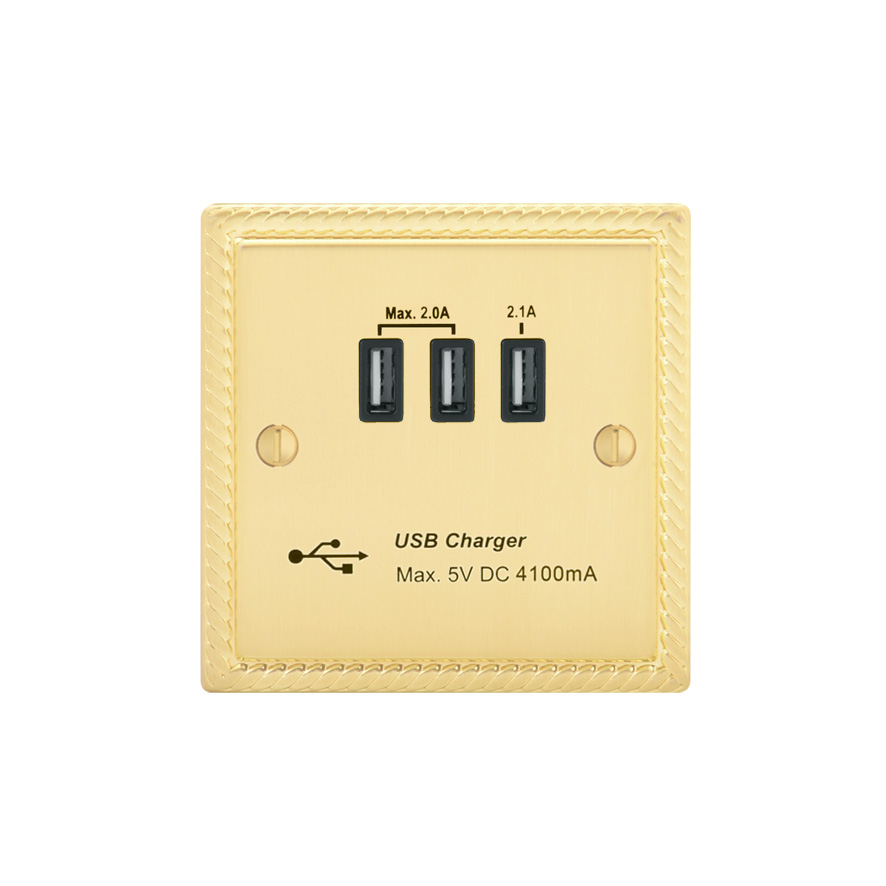 | GBR251-3U | Georgian Profile 4.1A USB Socket Outlet - with 4.1A Triple USB Charger | |