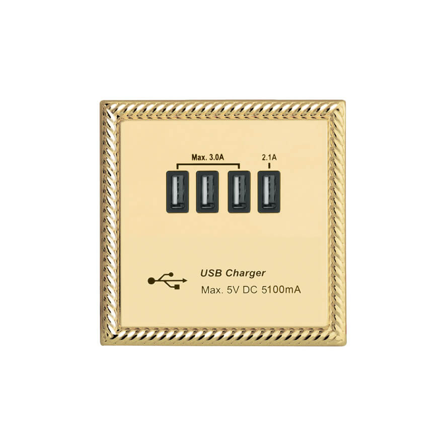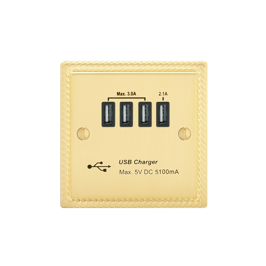 | GBR251-4U | Georgian Profile 5.1A USB Socket Outlet - with 5.1A Quad USB Charger | |