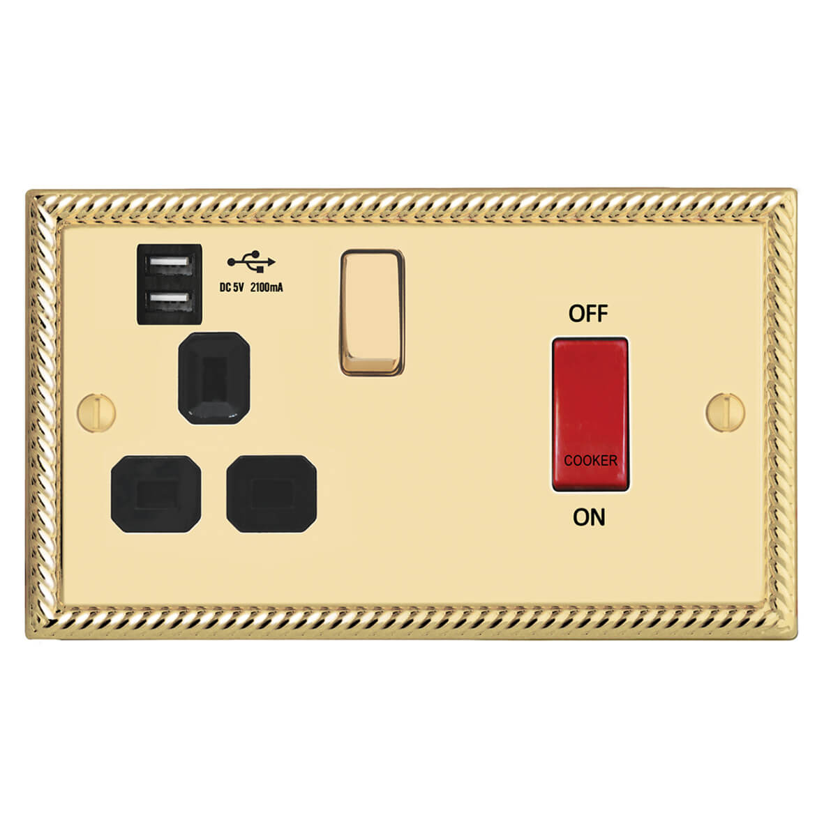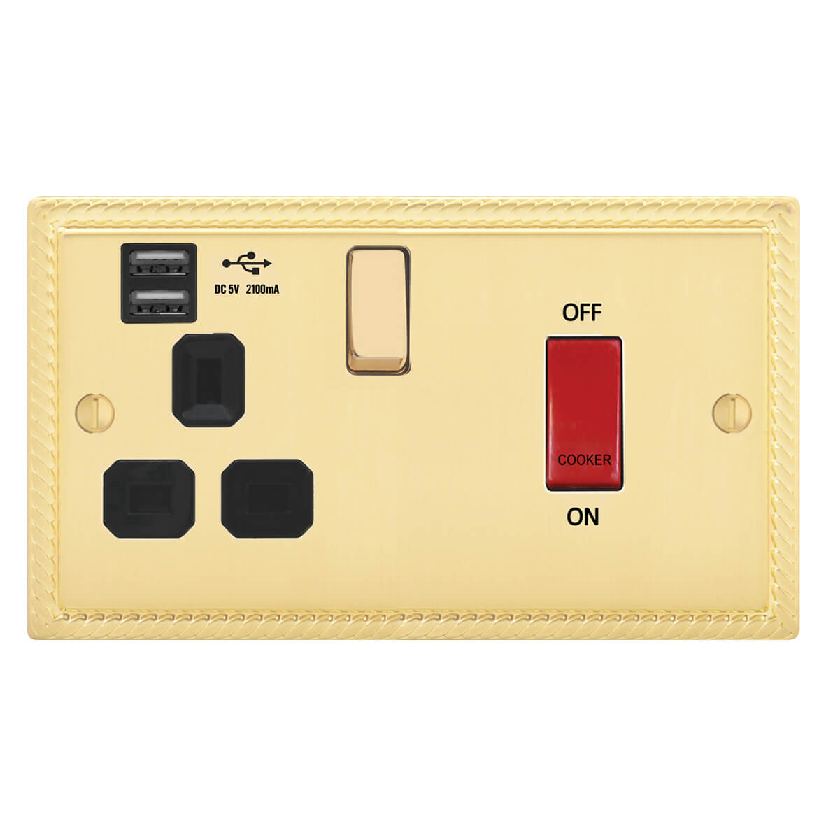 | GSB241-2U | Georgian Profile 45A D.P. Cooker Switch 13A Switched Socket USB (2.4A) | |