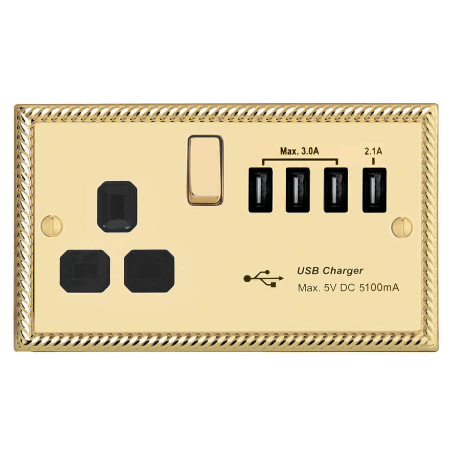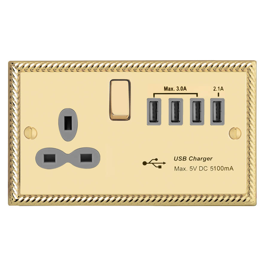 | GSB288-4U | Georgian Profile 1G 13A Switched Socket - SP with 5.1A Quad USB Charger | |