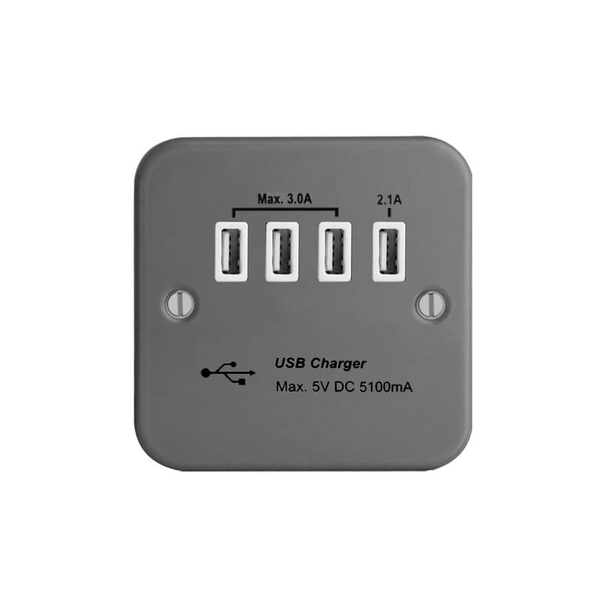 | FM251-4U | Metal Clad Range 5.1A USB Socket Outlet - with 5.1A Quad USB Charger | |