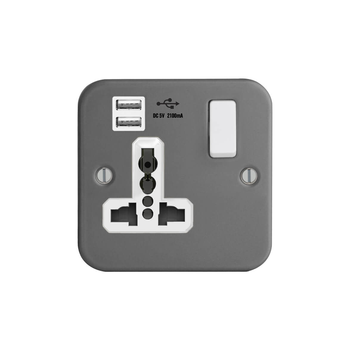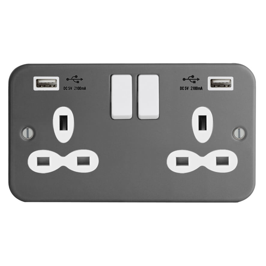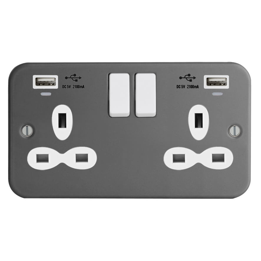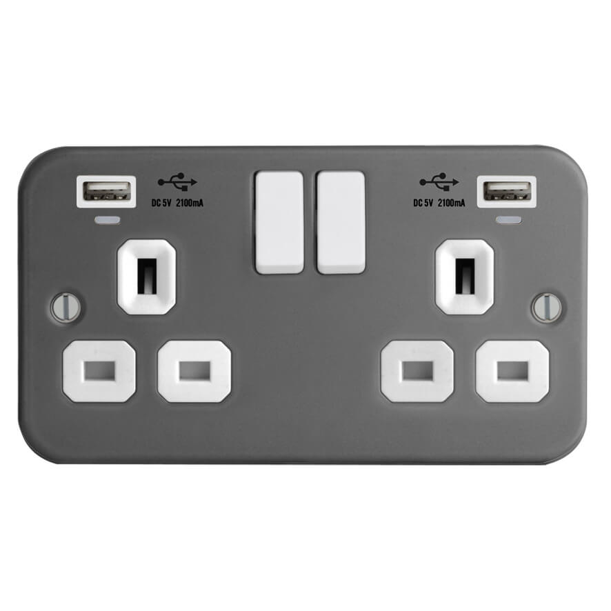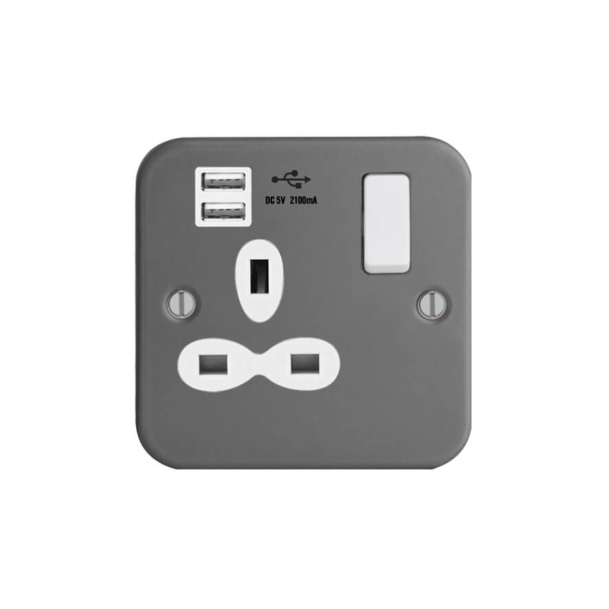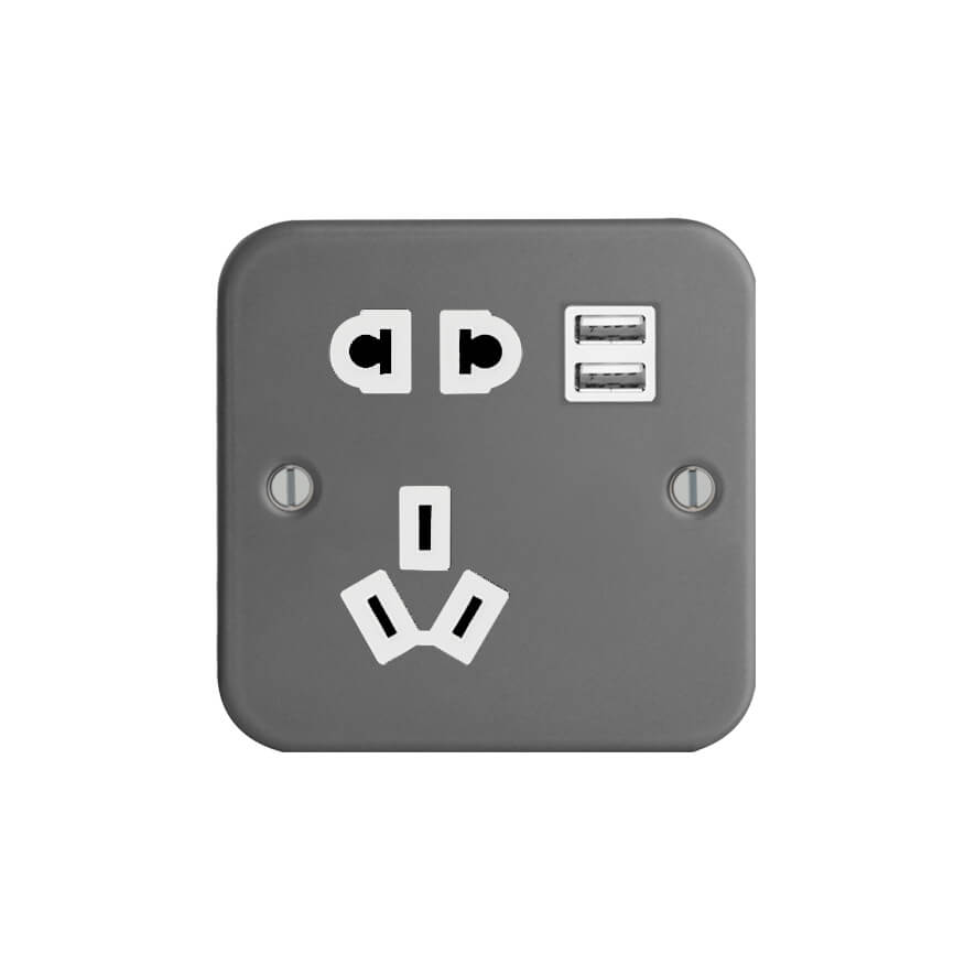 | FM289-2U | Metal Clad Range 1G Universal Switched Socket - SP with USB Charger(2.4A) | |