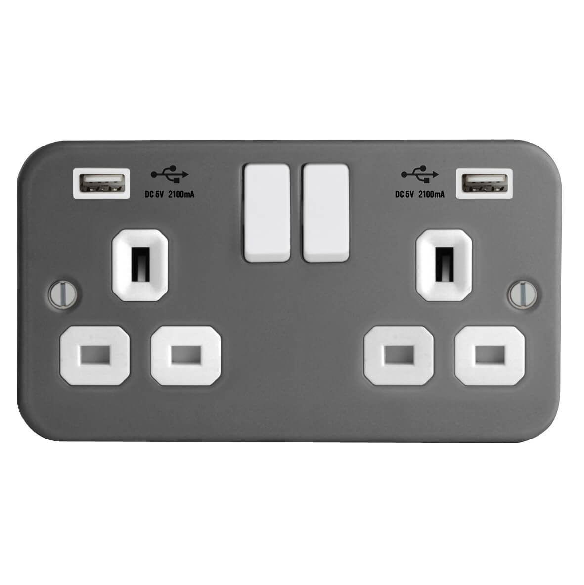 | FM282D-2U | Metal Clad Range 2G 13A Switched Socket-DP with USB Charger(2.4A) | |