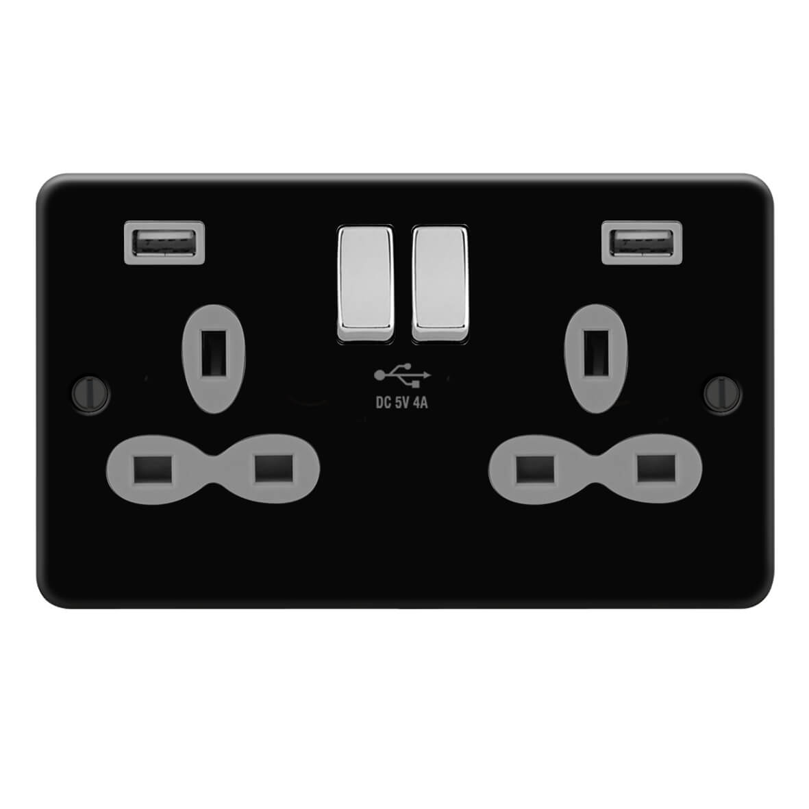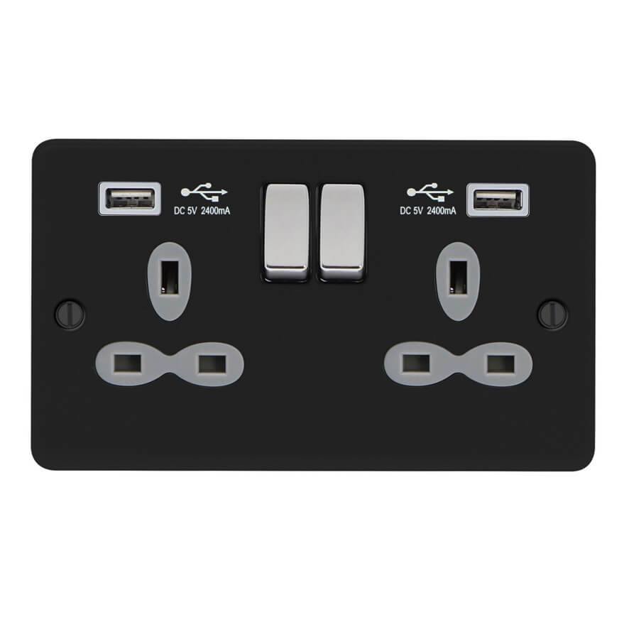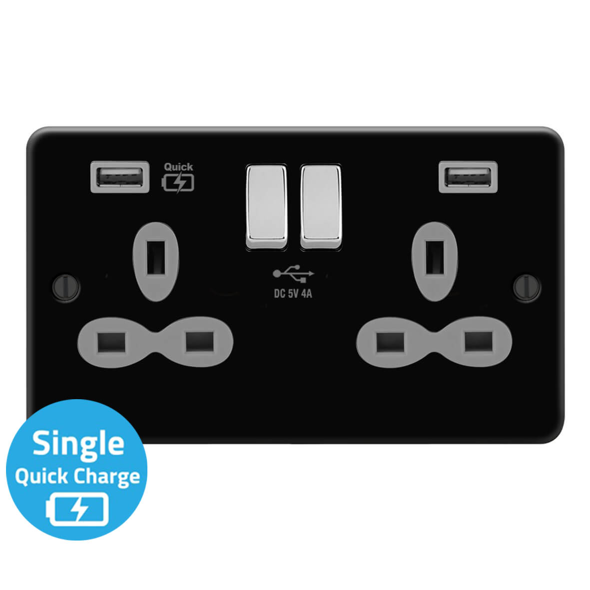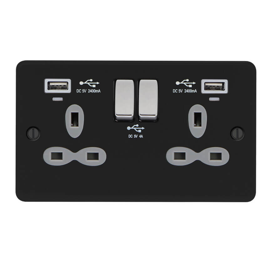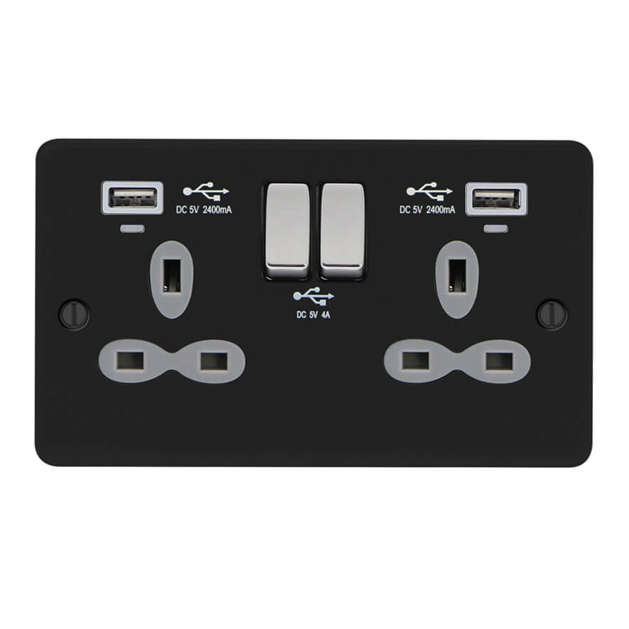 | SFBC382D-AA | Metal Slimline 2G 13A Switched Socket-DP with 4A Dual USB Charger