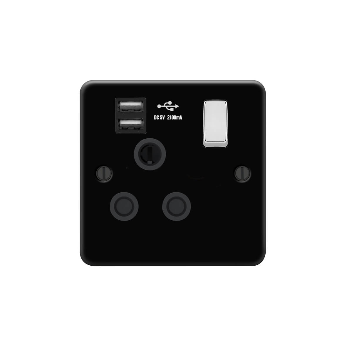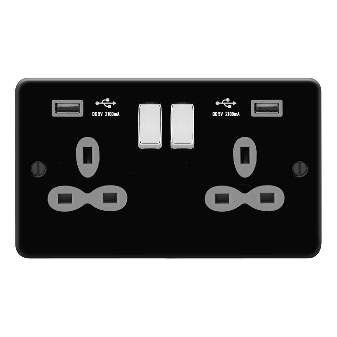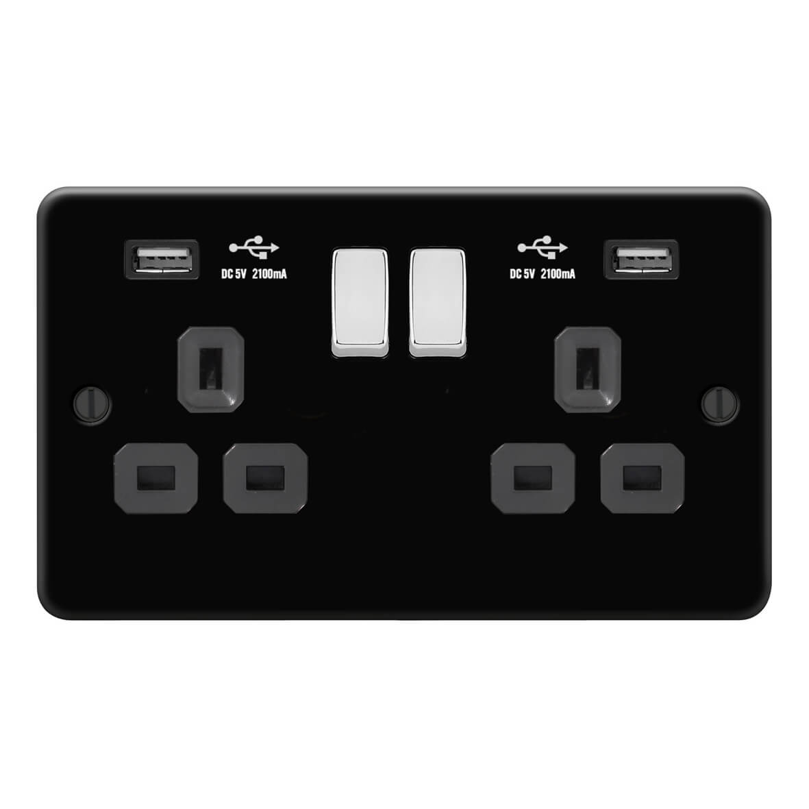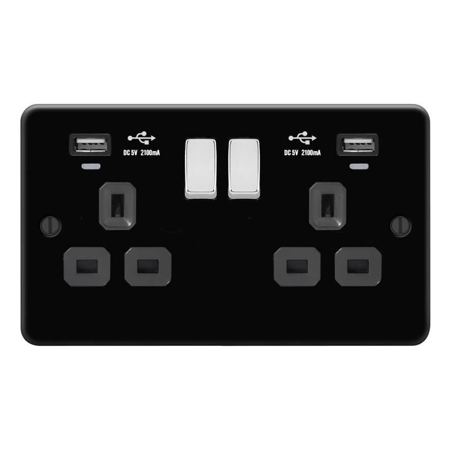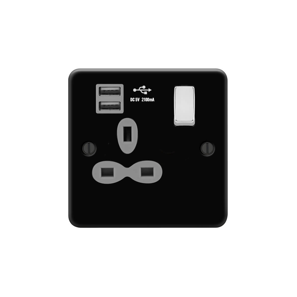 | SFBC382D-AA | Metal Slimline 2G 13A Switched Socket-DP with 4A Dual USB Charger