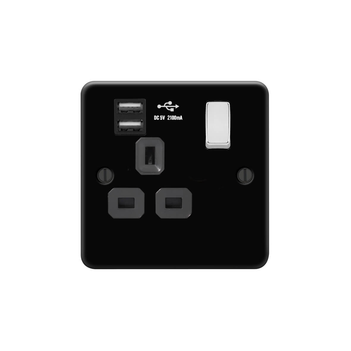 | SFBC382D-AC | Metal Slimline 2G 13A Switched Socket-DP with 4A Dual USB Charger