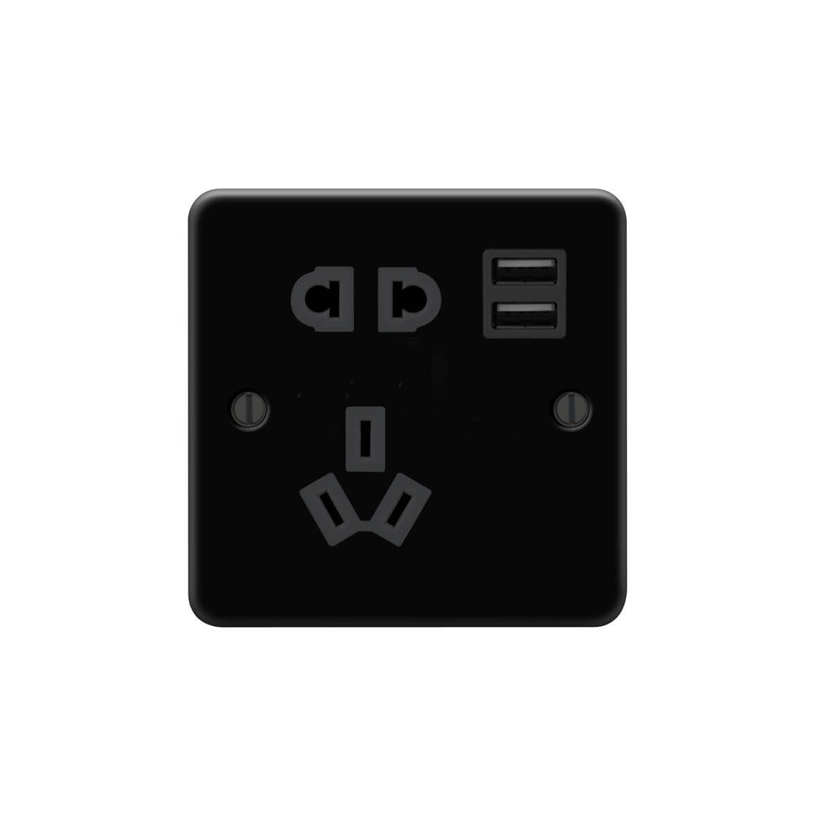 | SFBC381-2U | Metal Slimline 1G 13A Switched Socket-SP with 2.4A Dual USB Charger | |