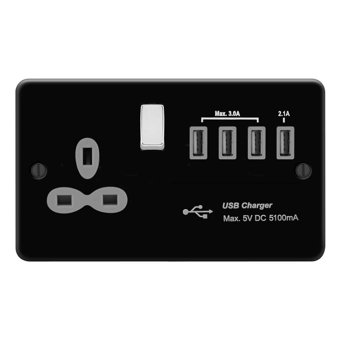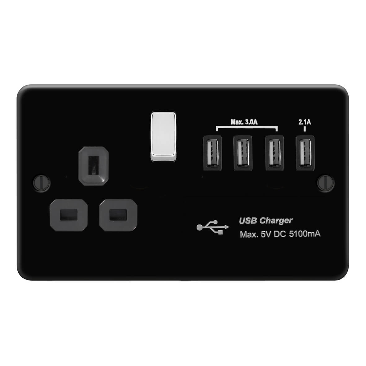 | SFBC288-4U | Metal Flat Profile 1G 13A Switched Socket - SP with 5.1A Quad USB Charger | |
