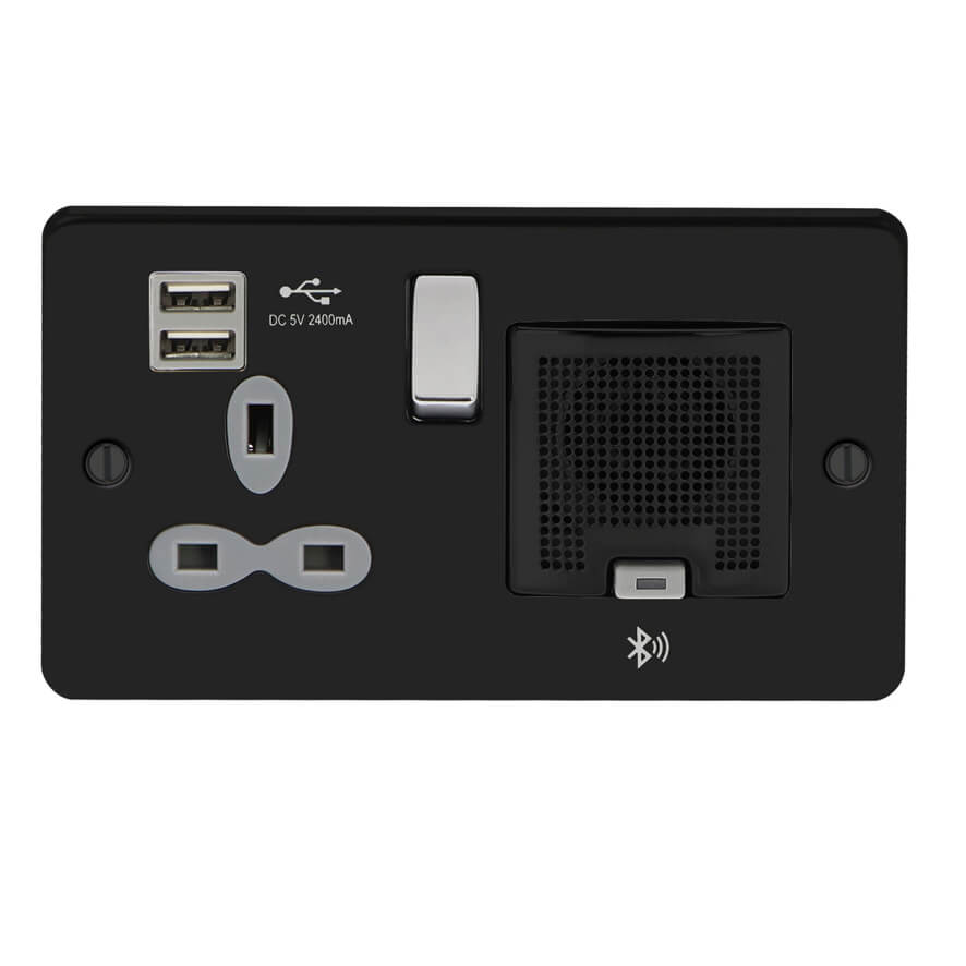 | SFBC381-2UBW | Metal Slimline 13A Switched Socket Outlets with 2.4A Dual USB Charger and TWS Bluetooth Audio Speaker | |
