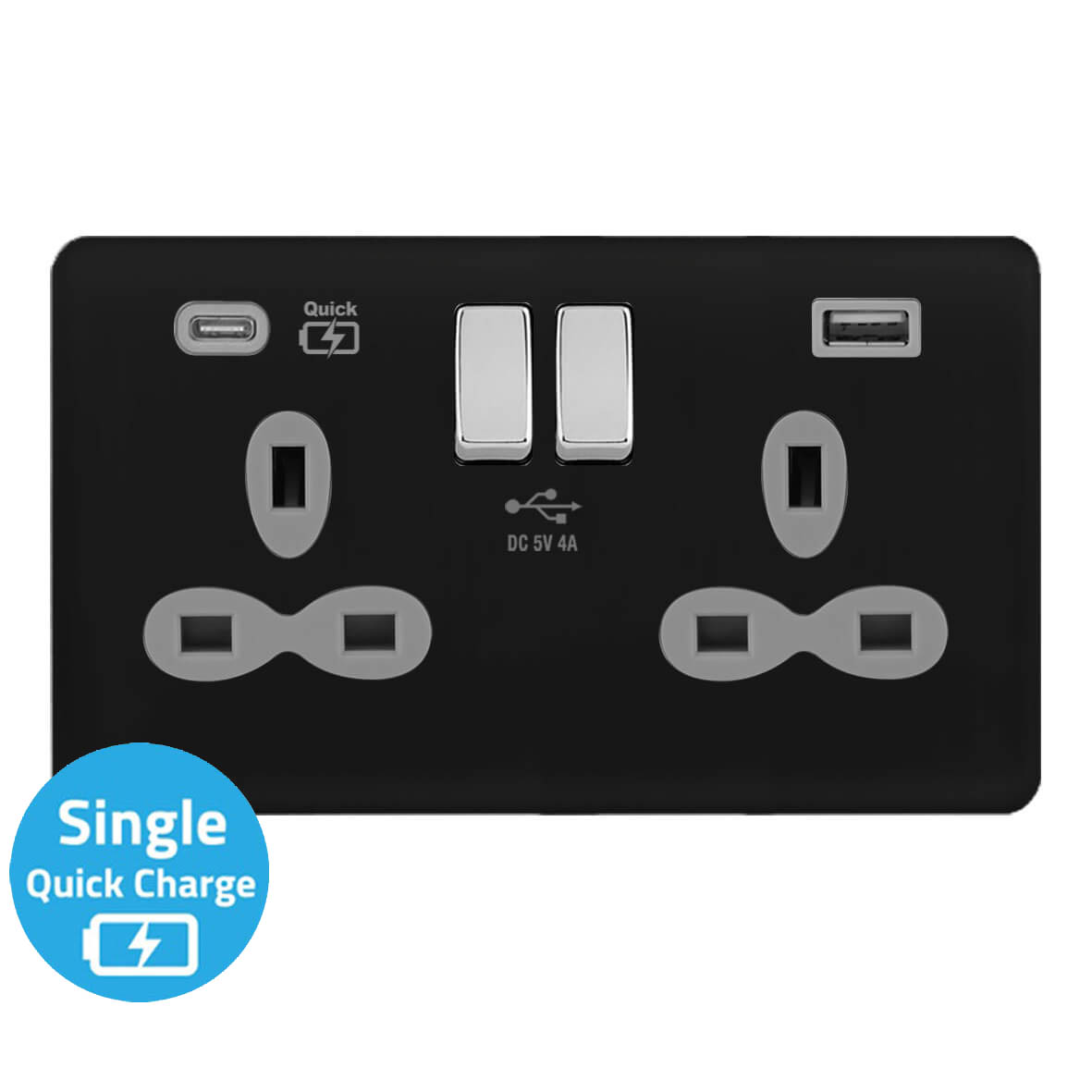 | BC382-AAQ | Screwless Curve Slimline Profile 2G 13A Switched Socket-SP with 4A Dual USB Charger(Type-A and A(Quick Charger)) | |