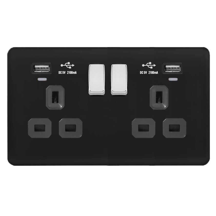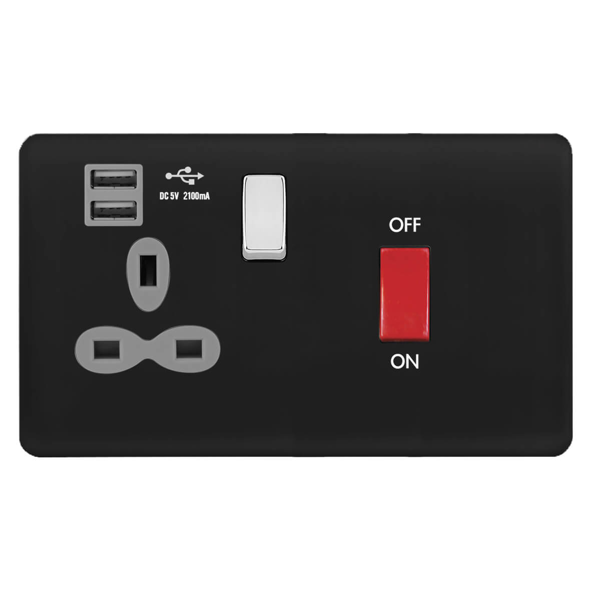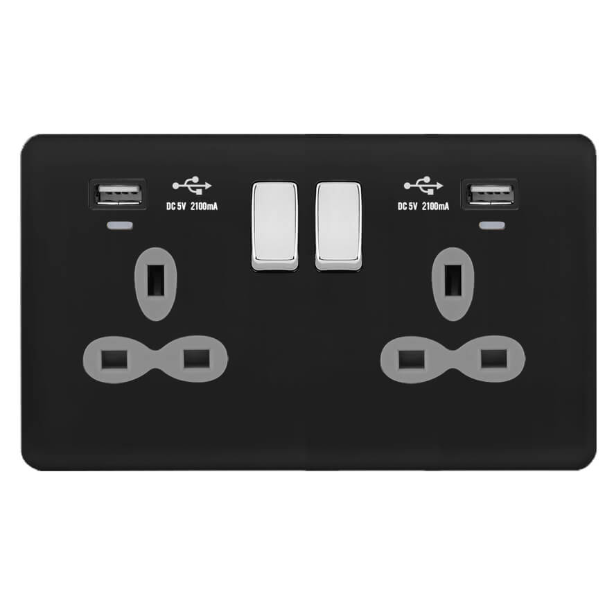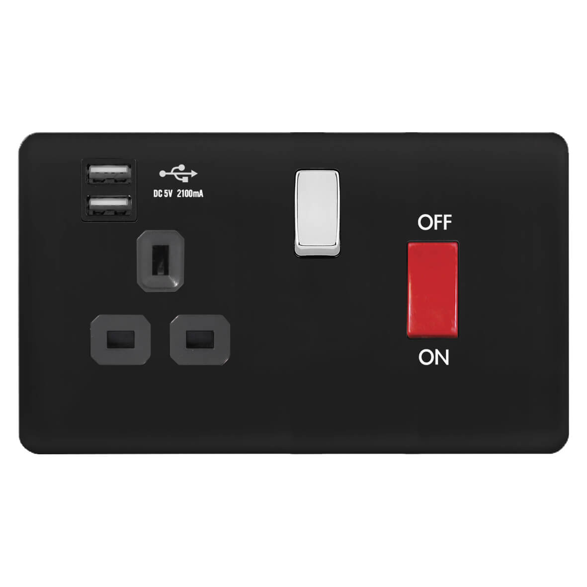 | BC341-2U | Screwless Curve Slimline 45A D.P. Switch 13A Switched Socket with Dual USB Charger (2.4A) | |
