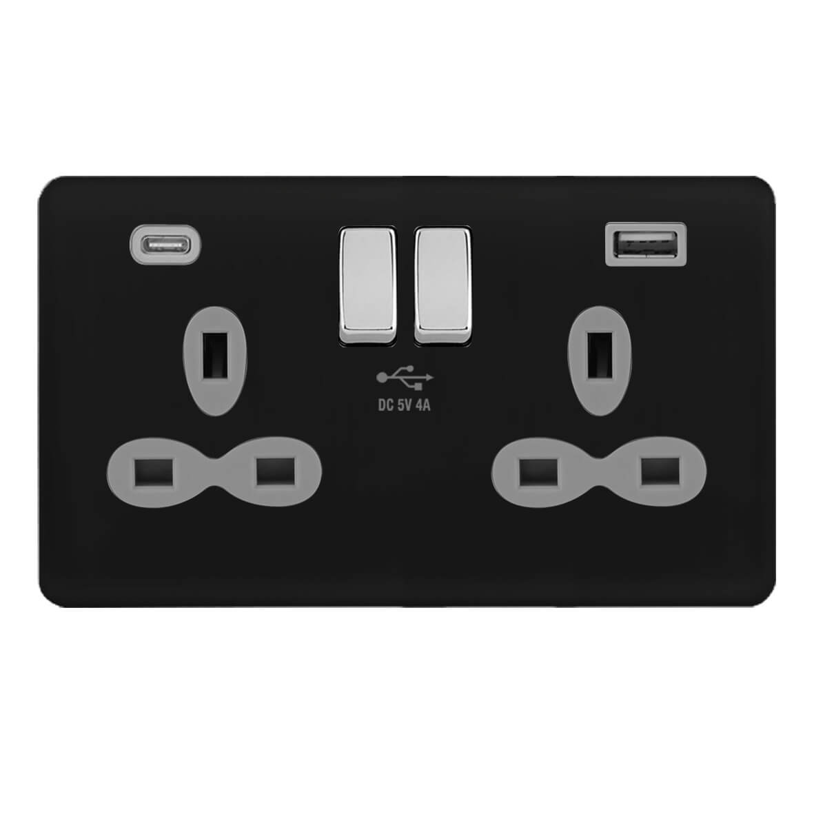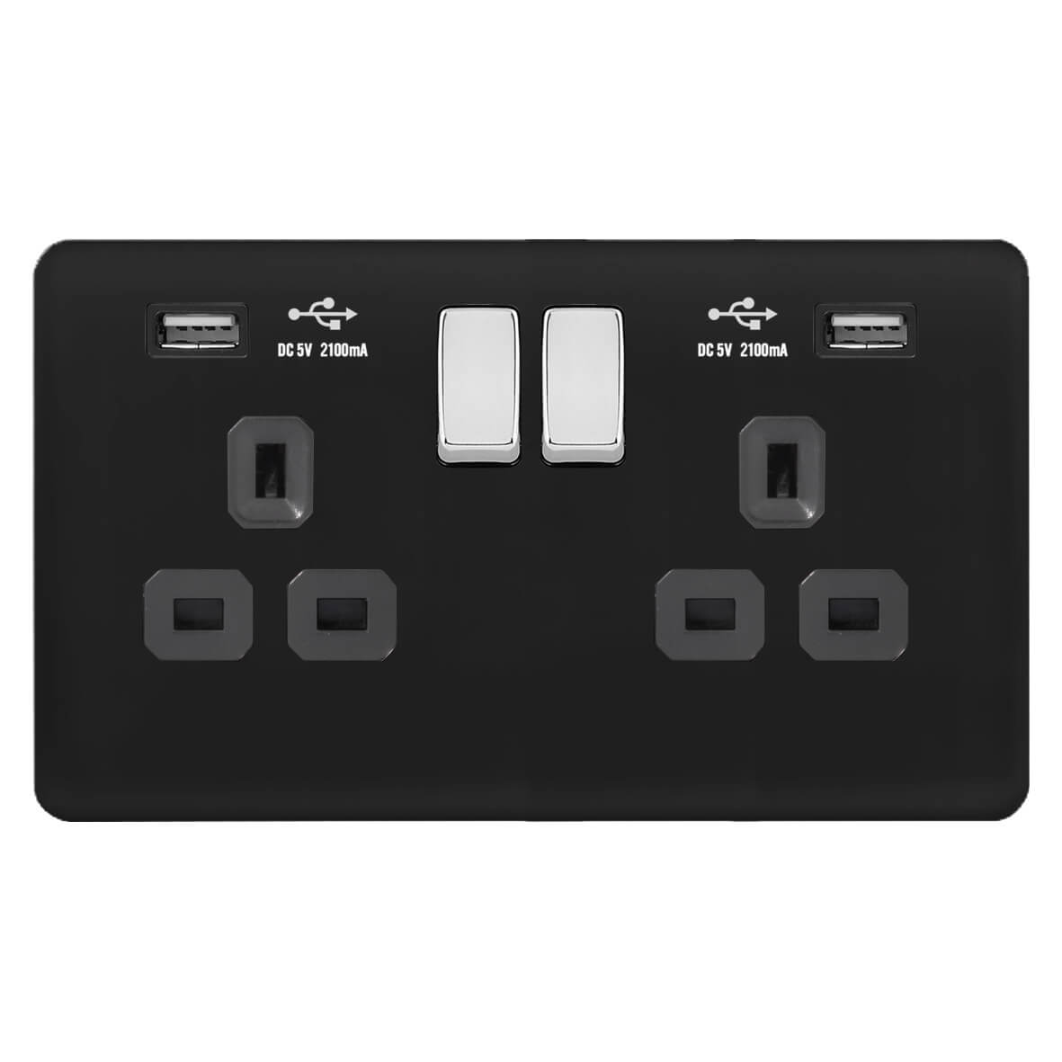 | BC382-AA | Screwless Curve Slimline Profile 2G 13A Switched Socket-SP with 4A Dual USB Charger