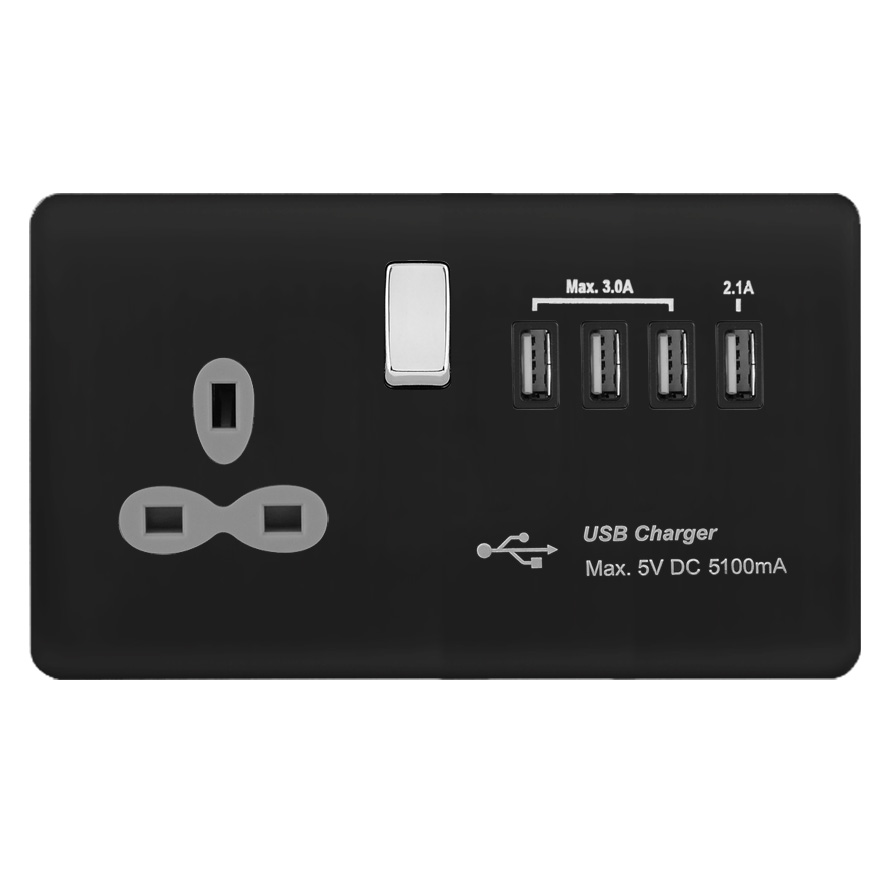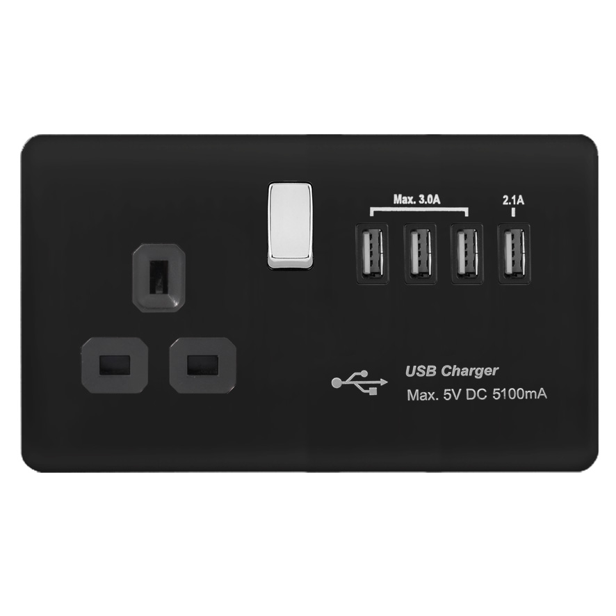 | BC288-4U | Screwless Curve Profile 1G 13A Switched Socket - SP with 5.1A Quad USB Charger | |