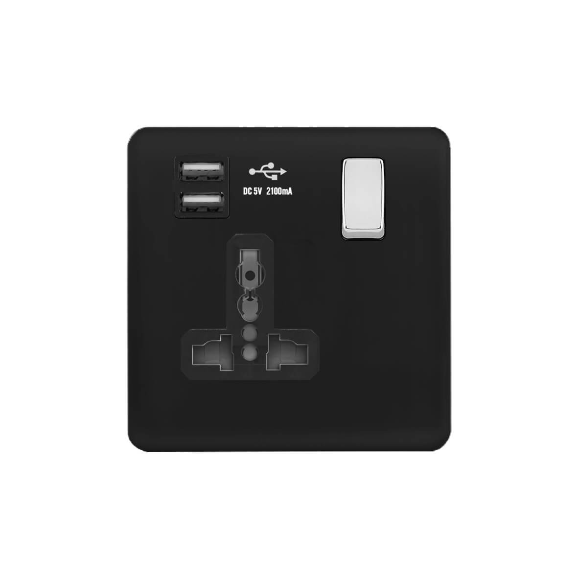 | BC289-2U | Screwless Curve Profile 1G Universal Switched Socket - SP with 2.4A Dual USB Charger | |
