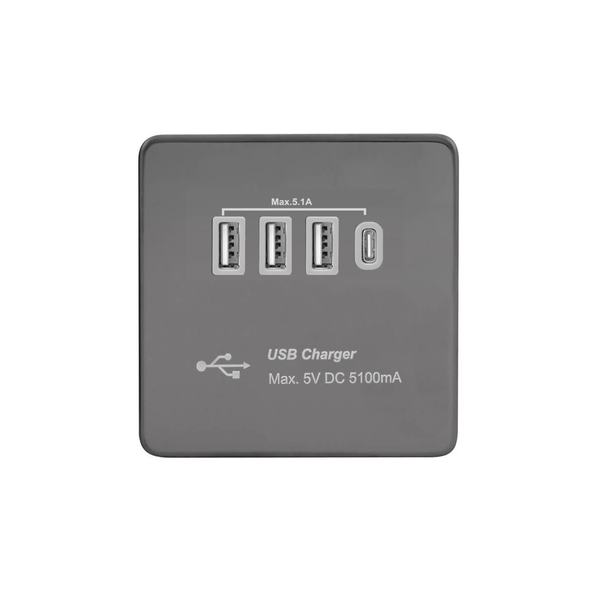 | FGM251-3A1C | Screwless Flat Profile 5.1A USB Socket Outlet - with 5.1A Quad USB Charger | |