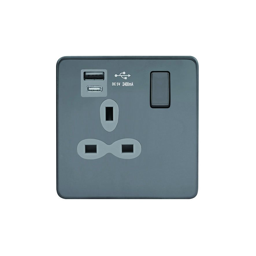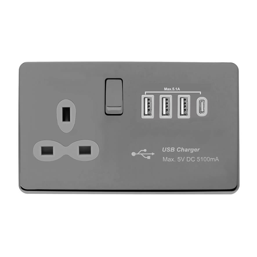 | FGM388-3A1C | Screwless Flat Profile 1G 13A Switched Socket - SP with 5.1A Quad USB Charger | |
