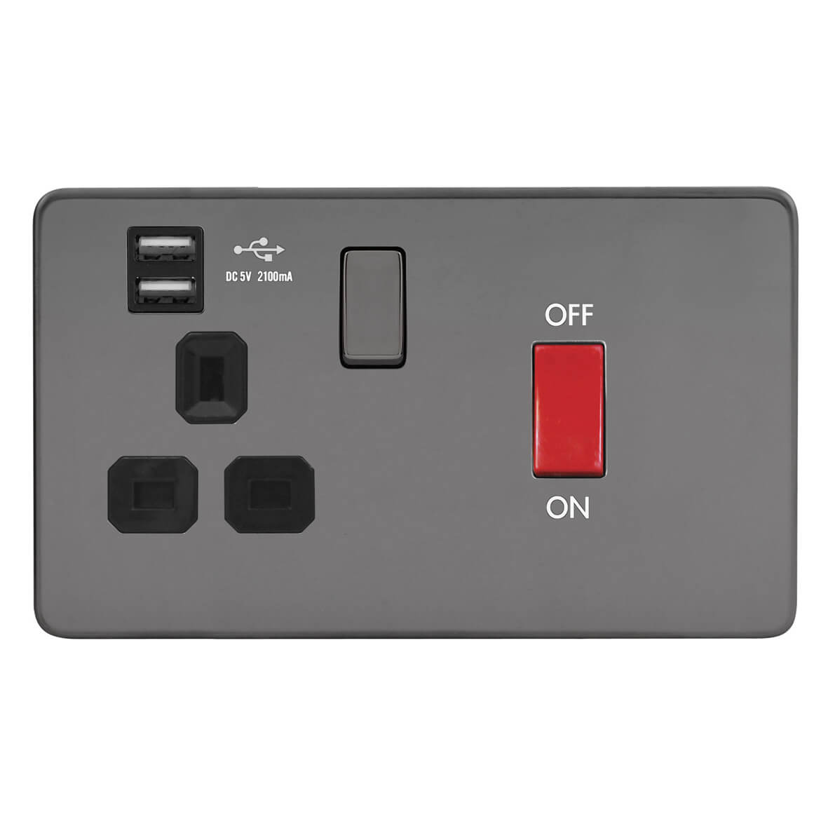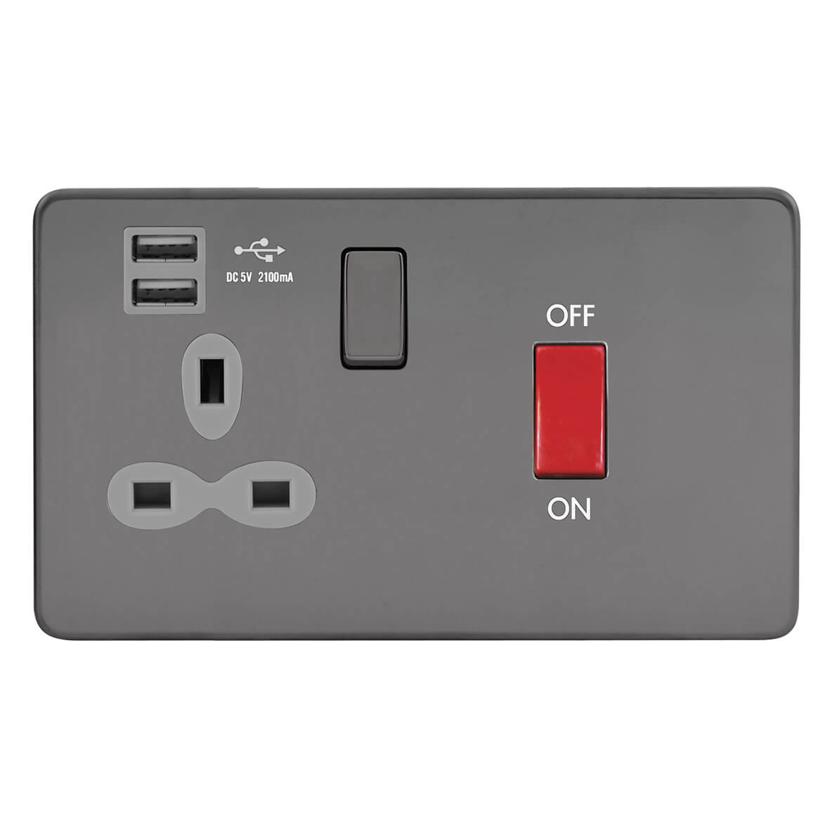 | FGM341-2U | Screwless Flat Profile 45A D.P. Switch 13A Switched Socket with Dual USB Charger (2.4A) | |