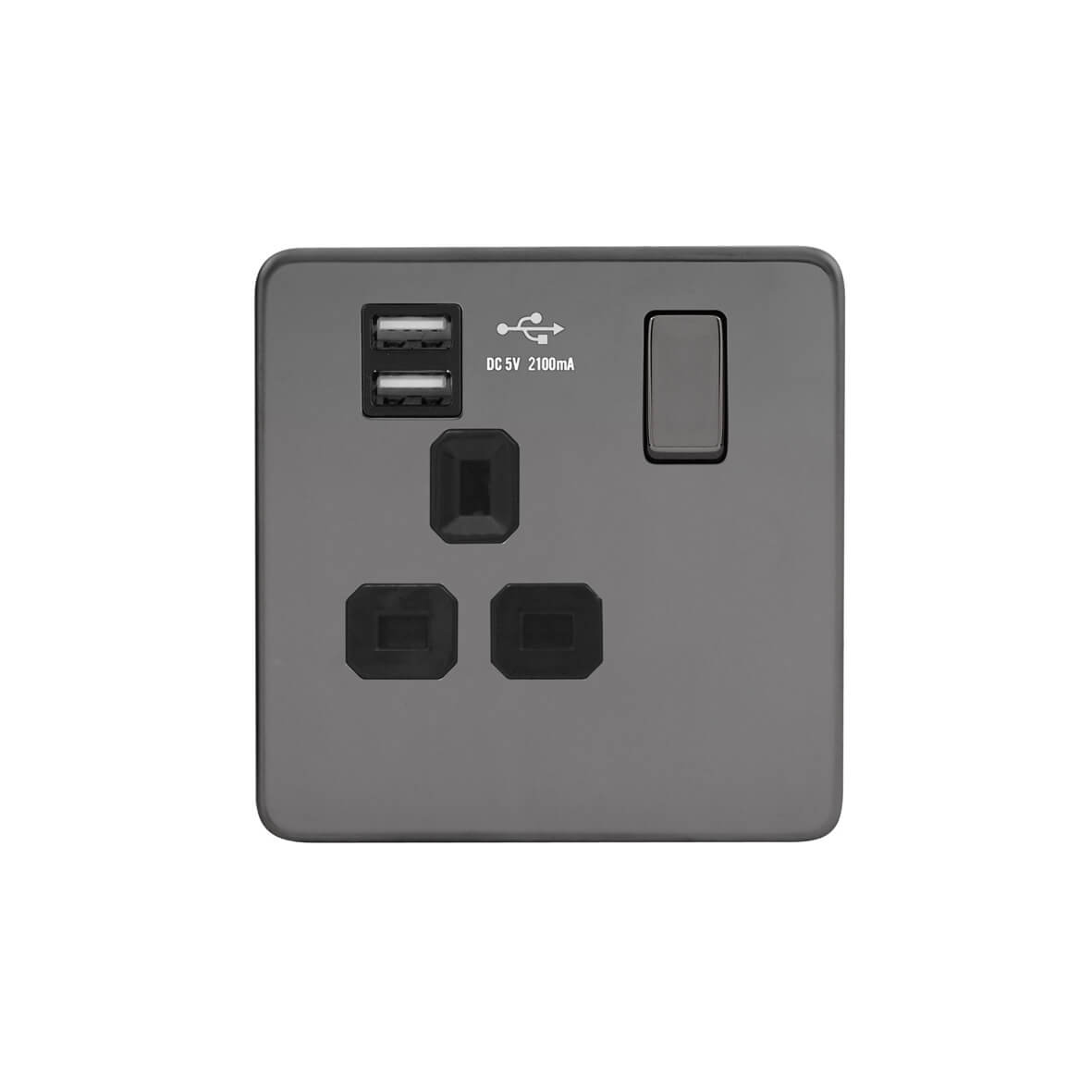 | FGM289-2U | Screwless Flat Profile 1G Universal Switched Socket - SP with 2.4A Dual USB Charger | |