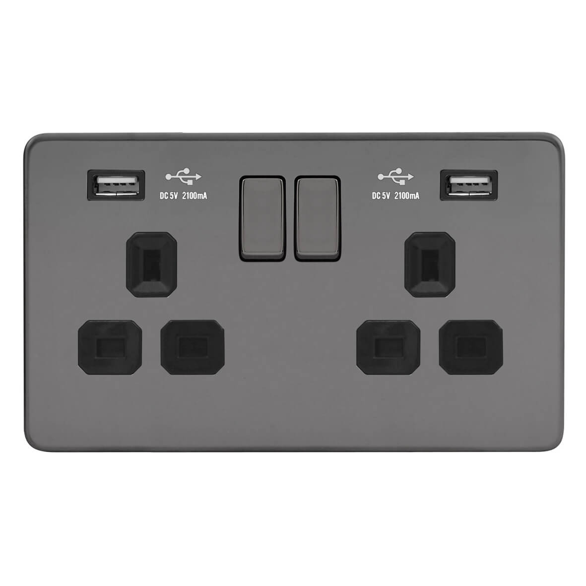 | FGM382D-AA | Screwless Flat Profile 2G 13A Switched Socket-DP with 4A Dual USB Charger