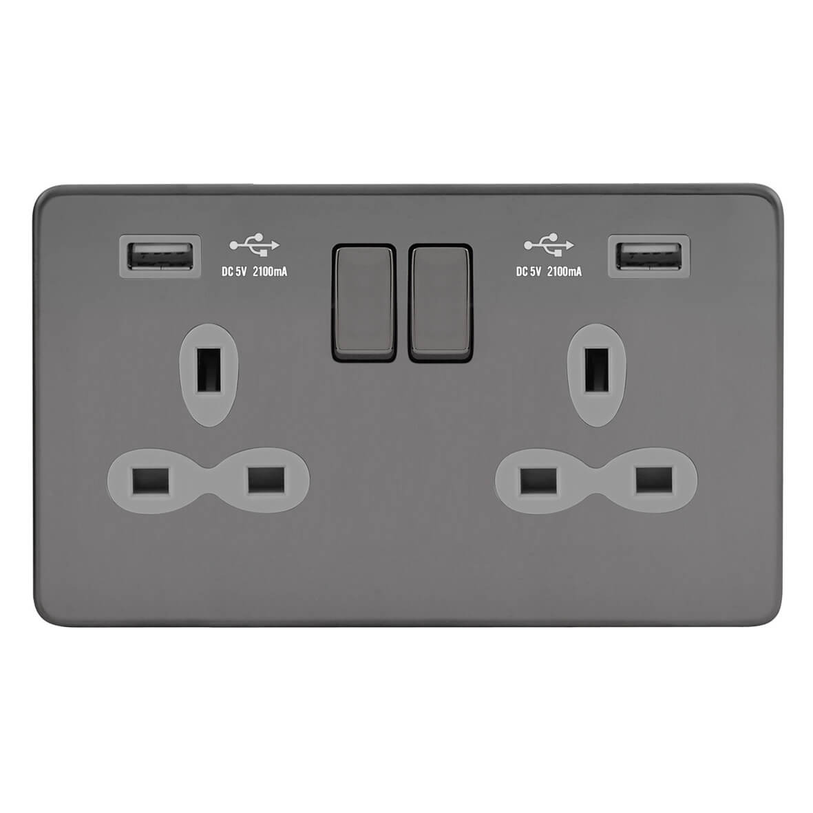 | FGM382-AA | Screwless Flat Profile 2G 13A Switched Socket-SP with 4A Dual USB Charger