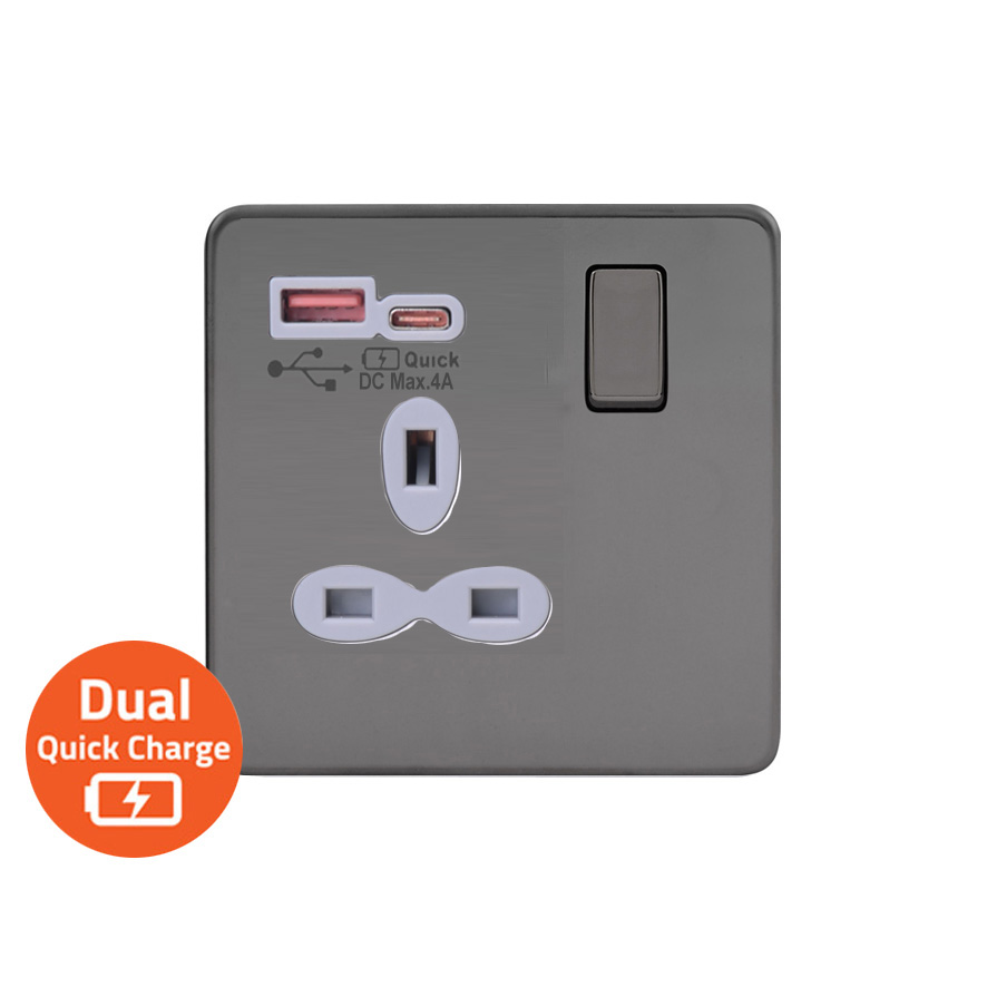 | FGM381-QAC | Screwless Flat Profile 1G 13A Switched Socket-SP with 4A Dual USB Quick Charger (USB-A/C) | |