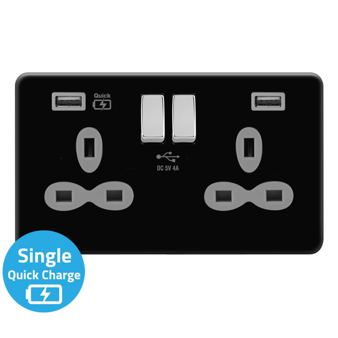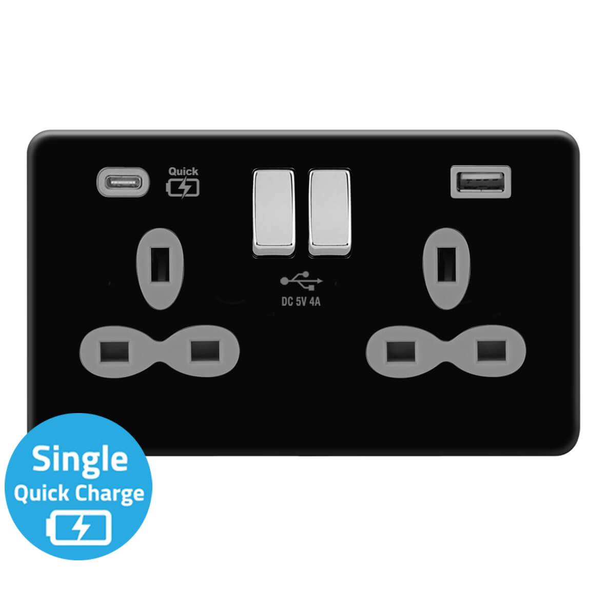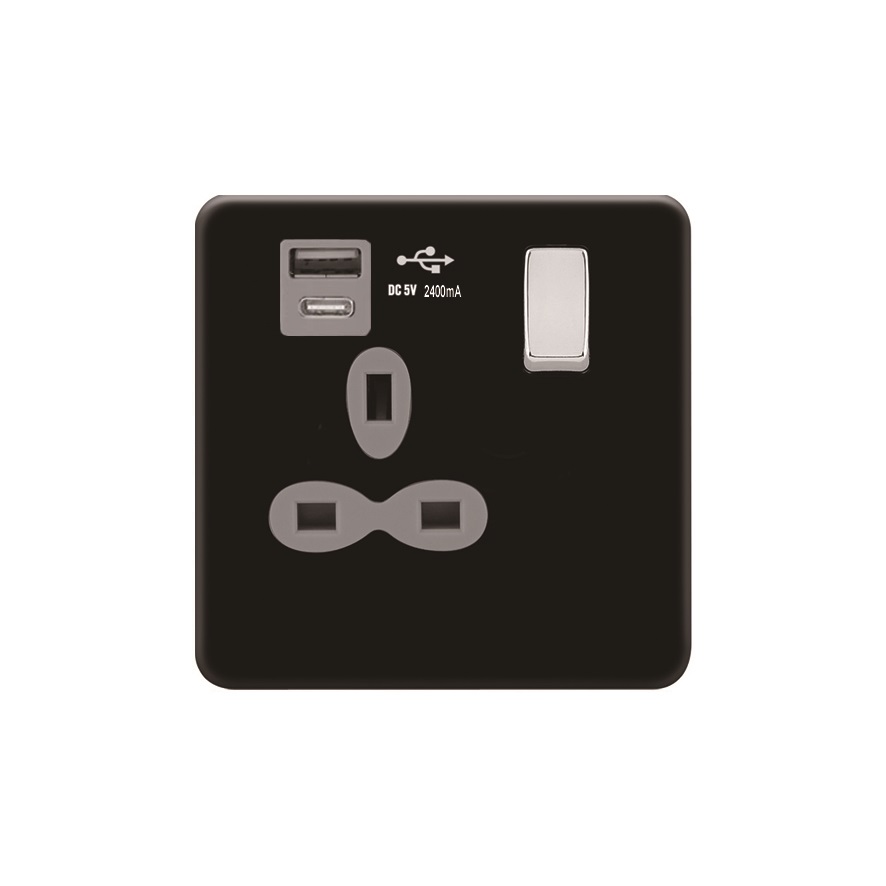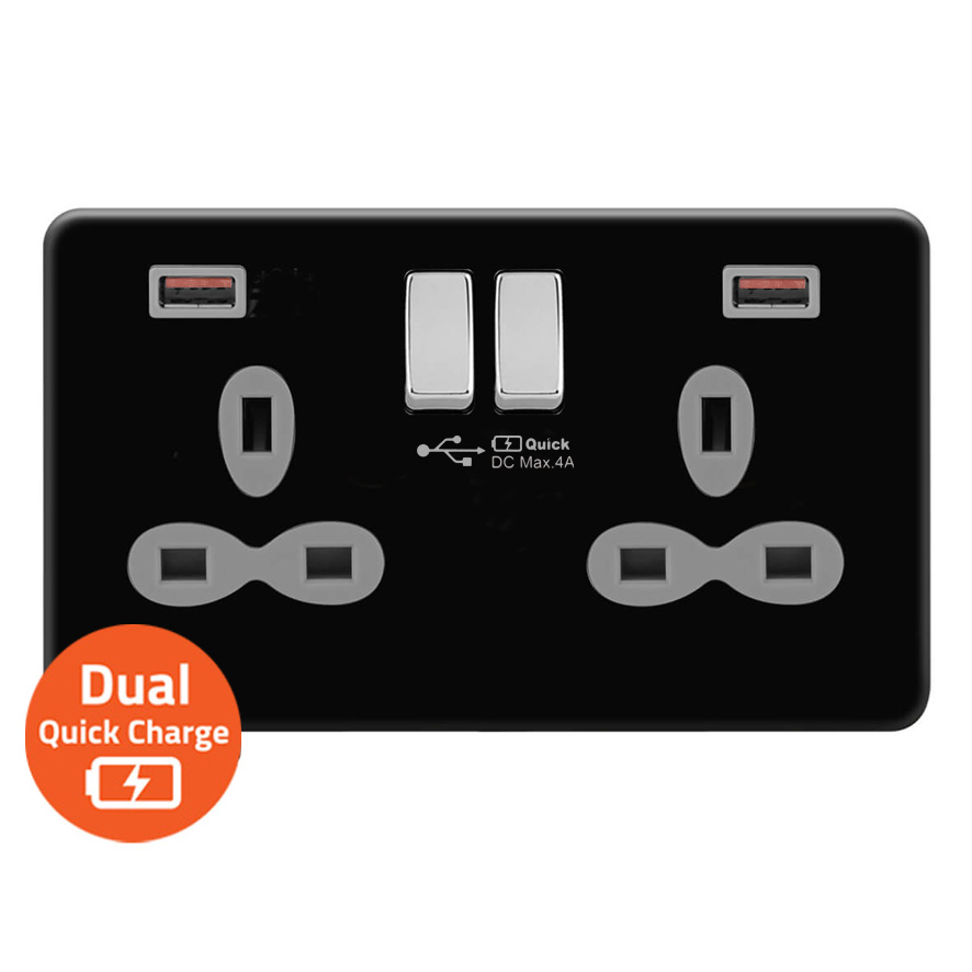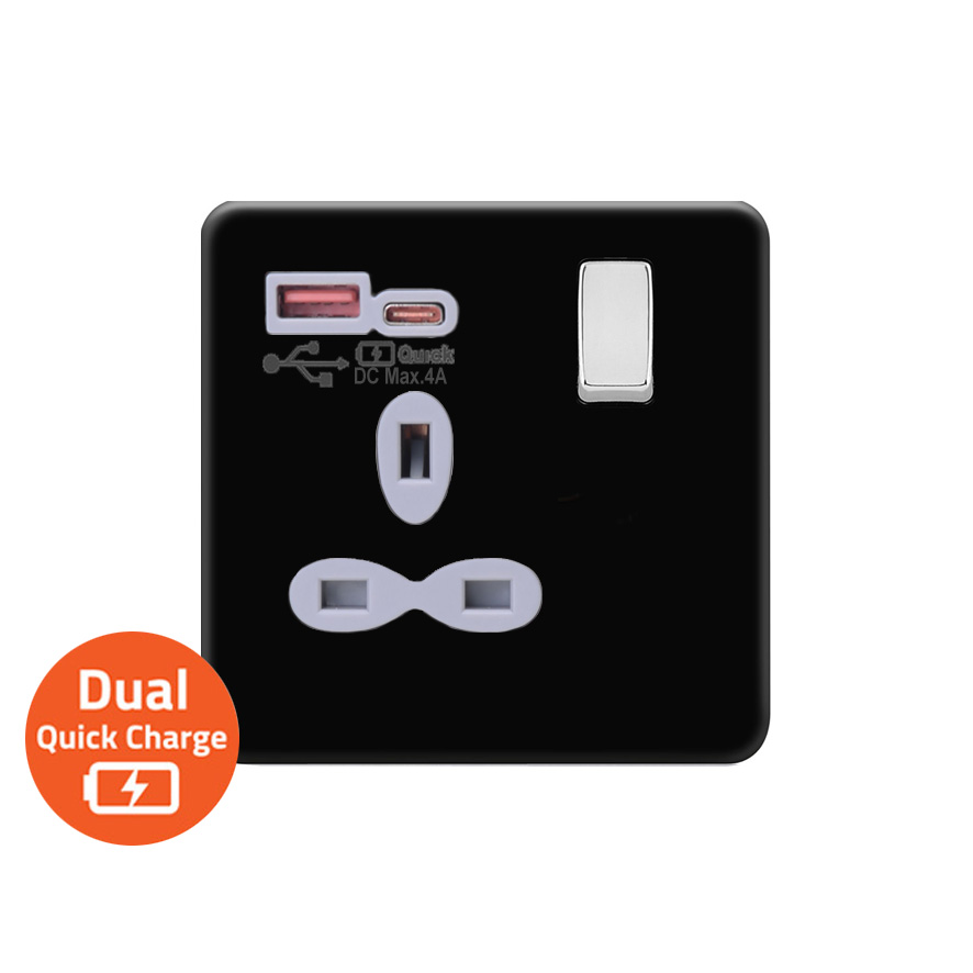 | FBC381-QAC | Screwless Flat Profile 1G 13A Switched Socket-SP with 4A Dual USB Quick Charger (USB-A/C) | |