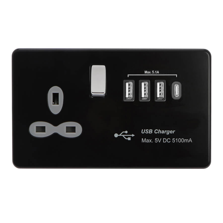 | FBC388-3A1C | Screwless Flat Profile 1G 13A Switched Socket - SP with 5.1A Quad USB Charger | |