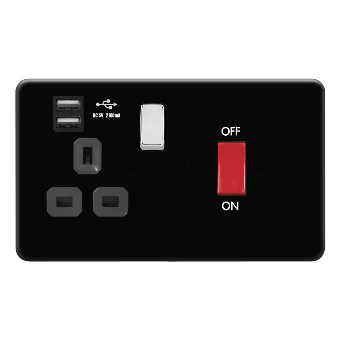 | FBC341-2U | Screwless Flat Profile 45A D.P. Switch 13A Switched Socket with Dual USB Charger (2.4A) | |
