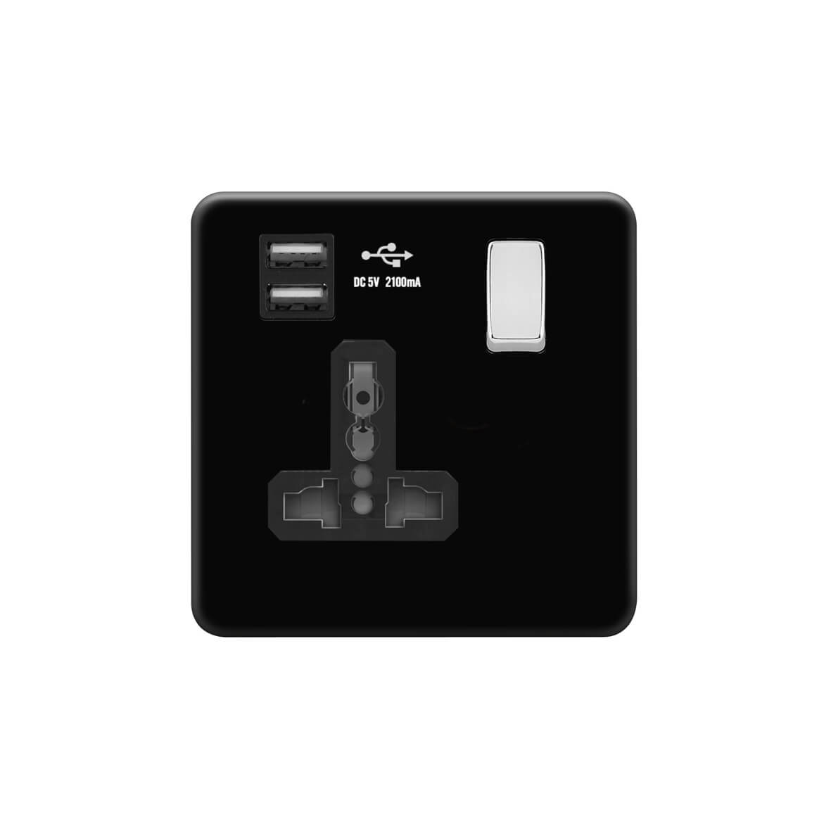 | FBC289-2U | Screwless Flat Profile 1G Universal Switched Socket - SP with 2.4A Dual USB Charger | |