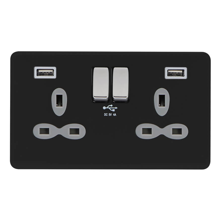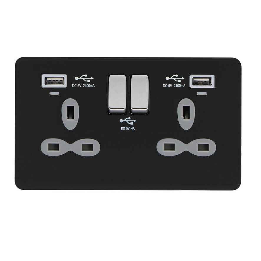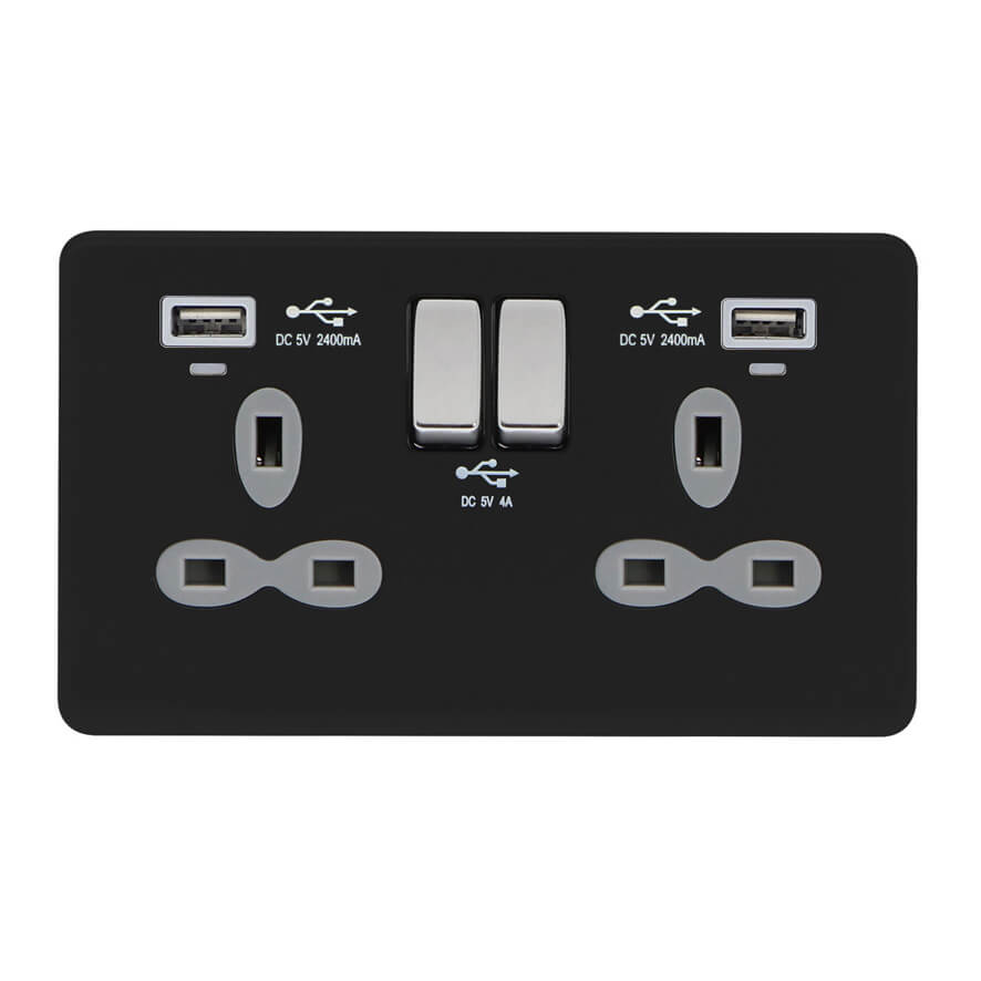 | FBC382-AA | Screwless Flat Profile 2G 13A Switched Socket-SP with 4A Dual USB Charger