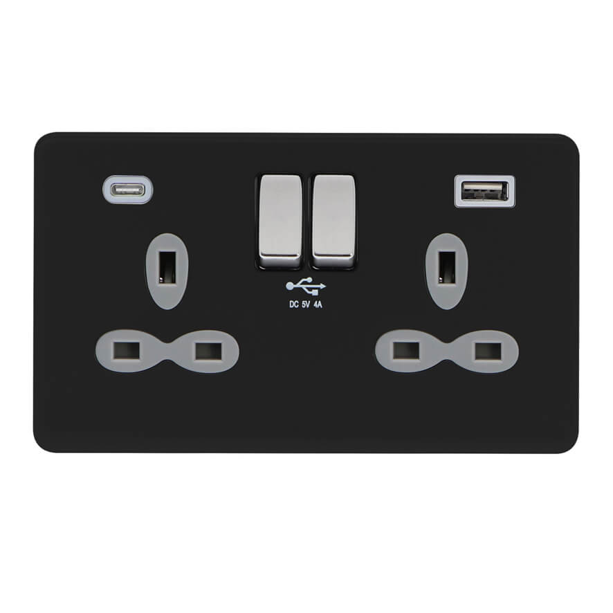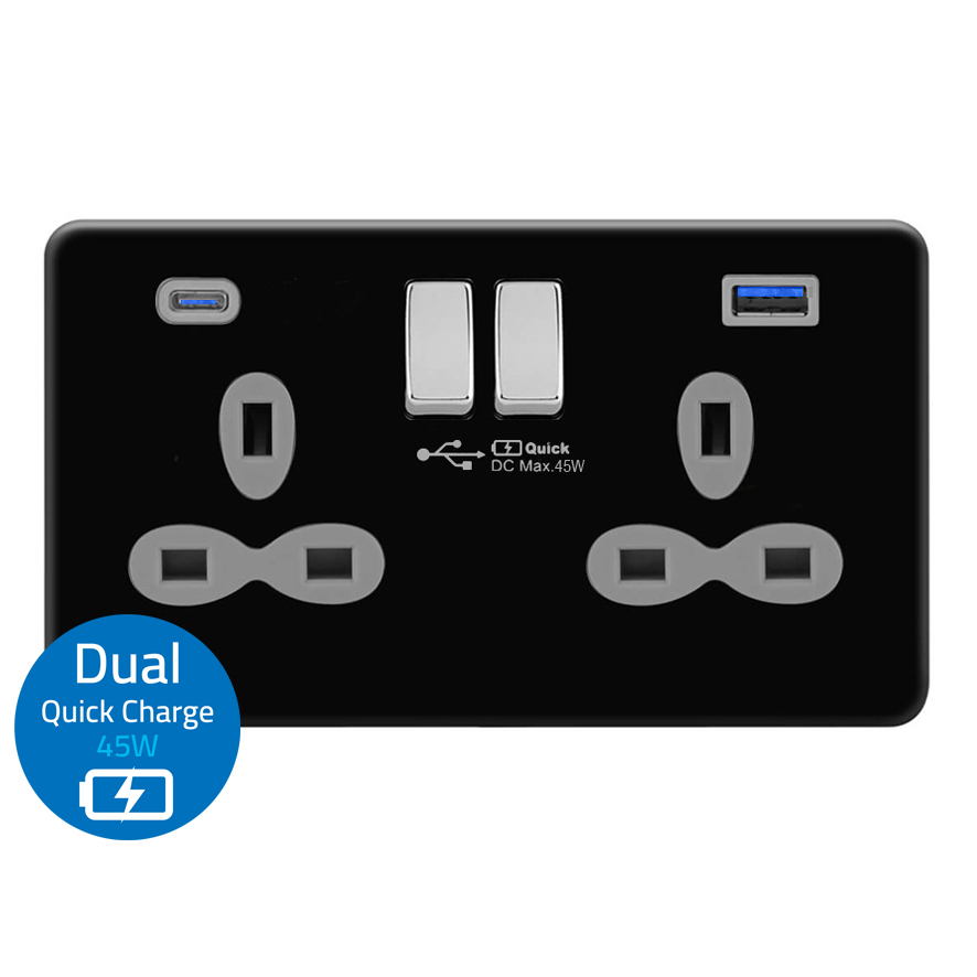 | FBC382D-ACQ | Screwless Flat Profile 2G 13A Switched Socket-DP with 4A Dual USB Charger(Type-A and C(Quick Charger)) | |