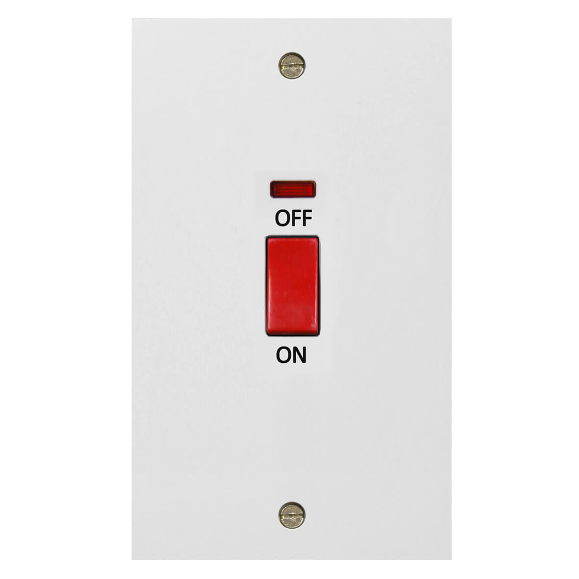 | 143 | Molded White Square Profile 45A D.P. Switch - Single Plate | |