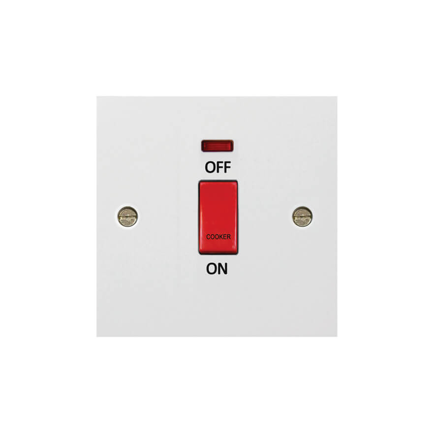 | 141N | Molded White Square Profile 45A D.P. Cooker Switch 13A Switched Socket with Neon | |