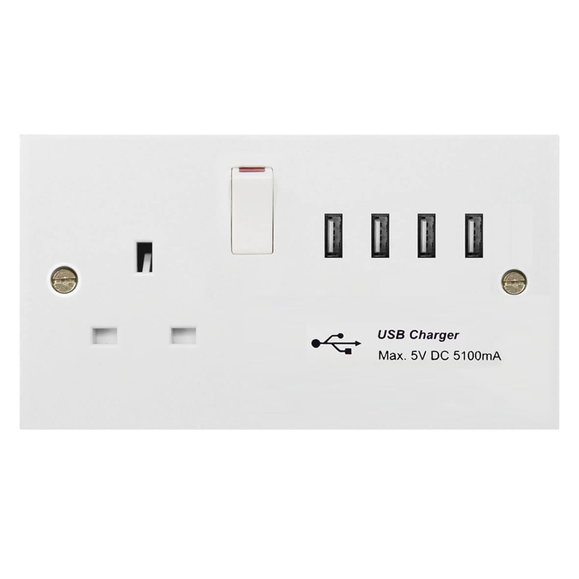 | 188-4U | Molded White Square Profile 1G 13A Switched Socket - SP with 5.1A Quad USB Charger | |