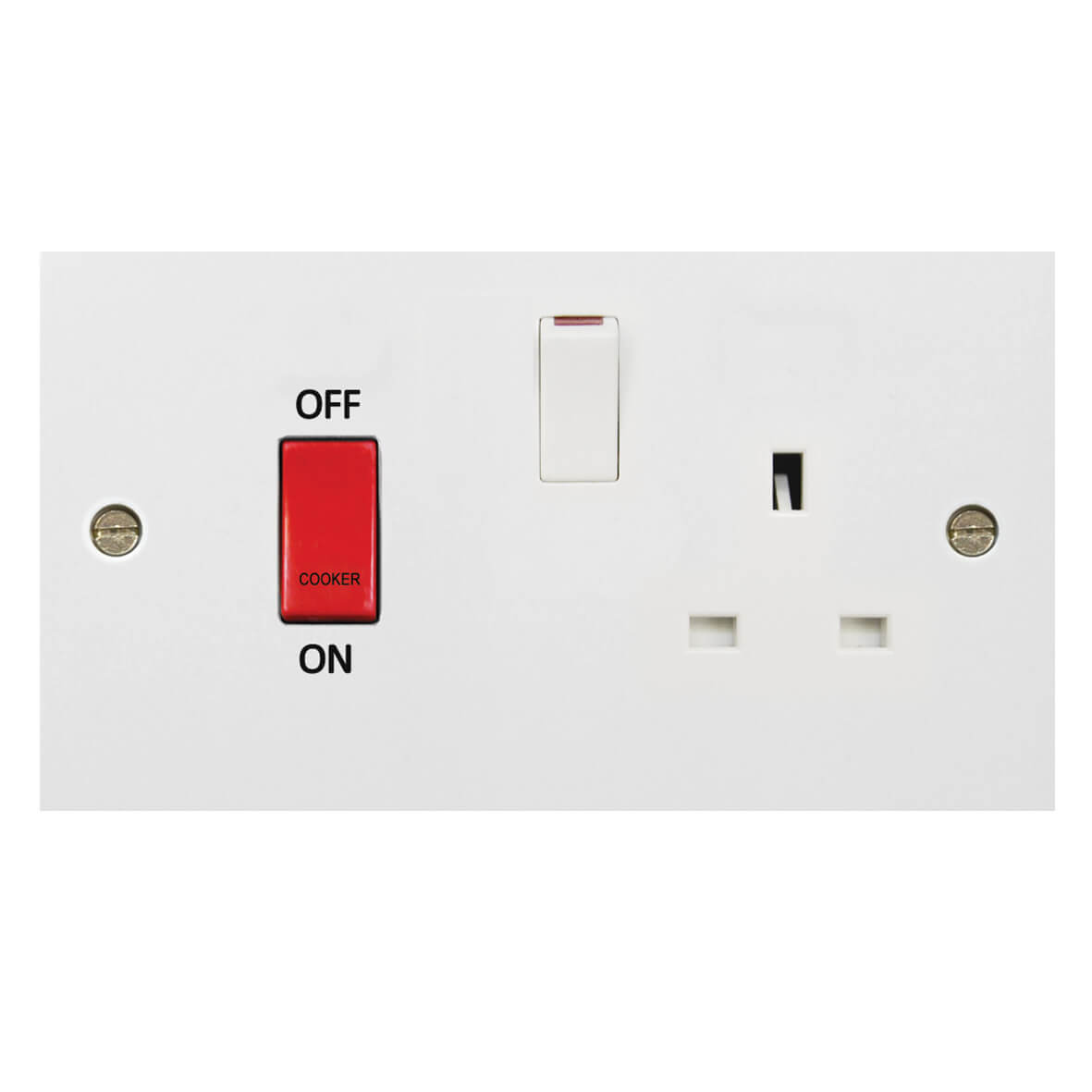 | 141 | Molded White Square Profile 45A D.P. Cooker Switch 13A Switched Socket | |