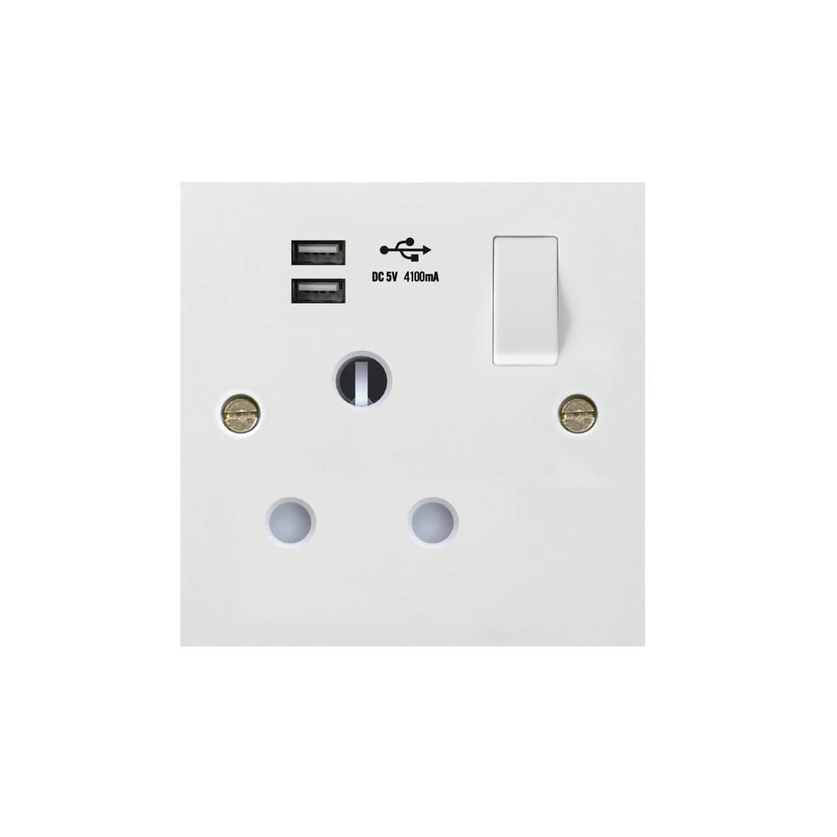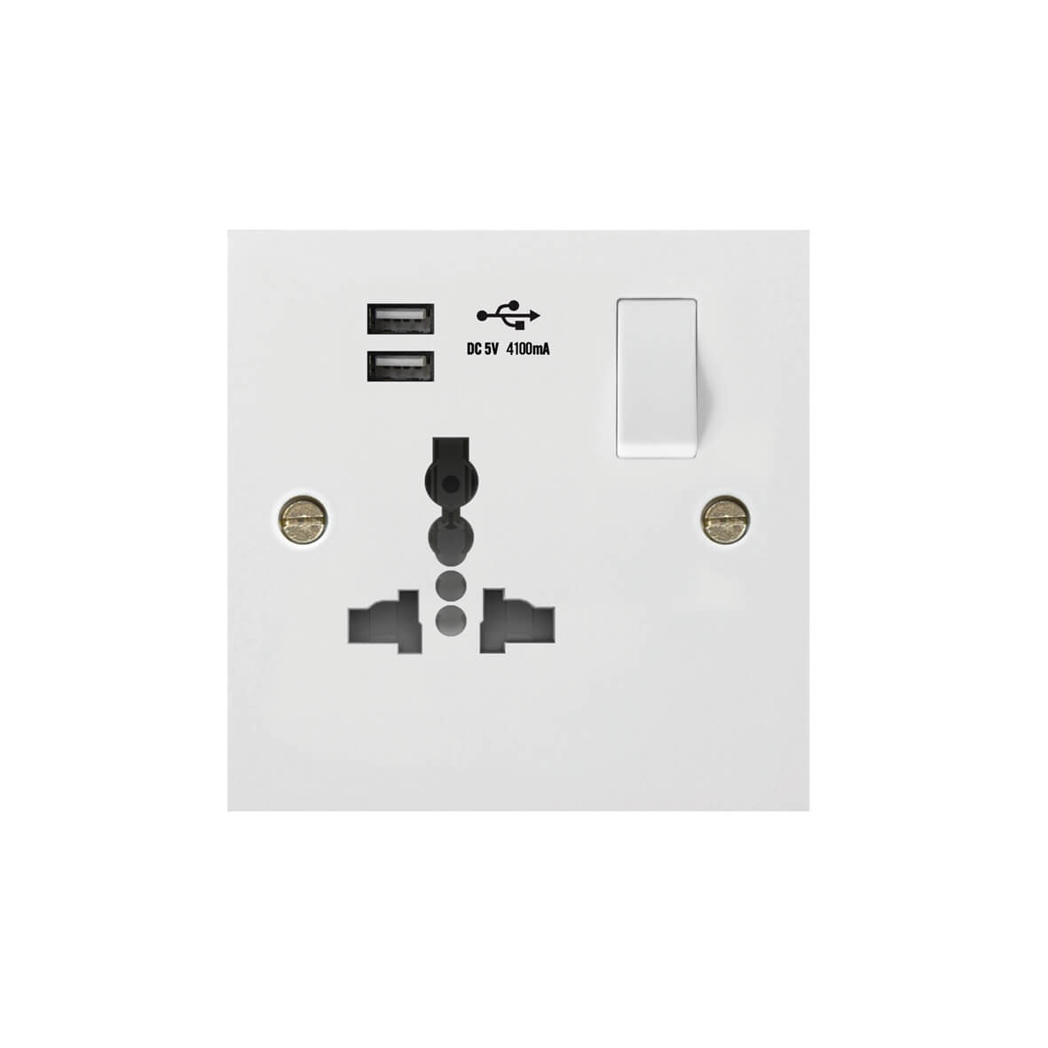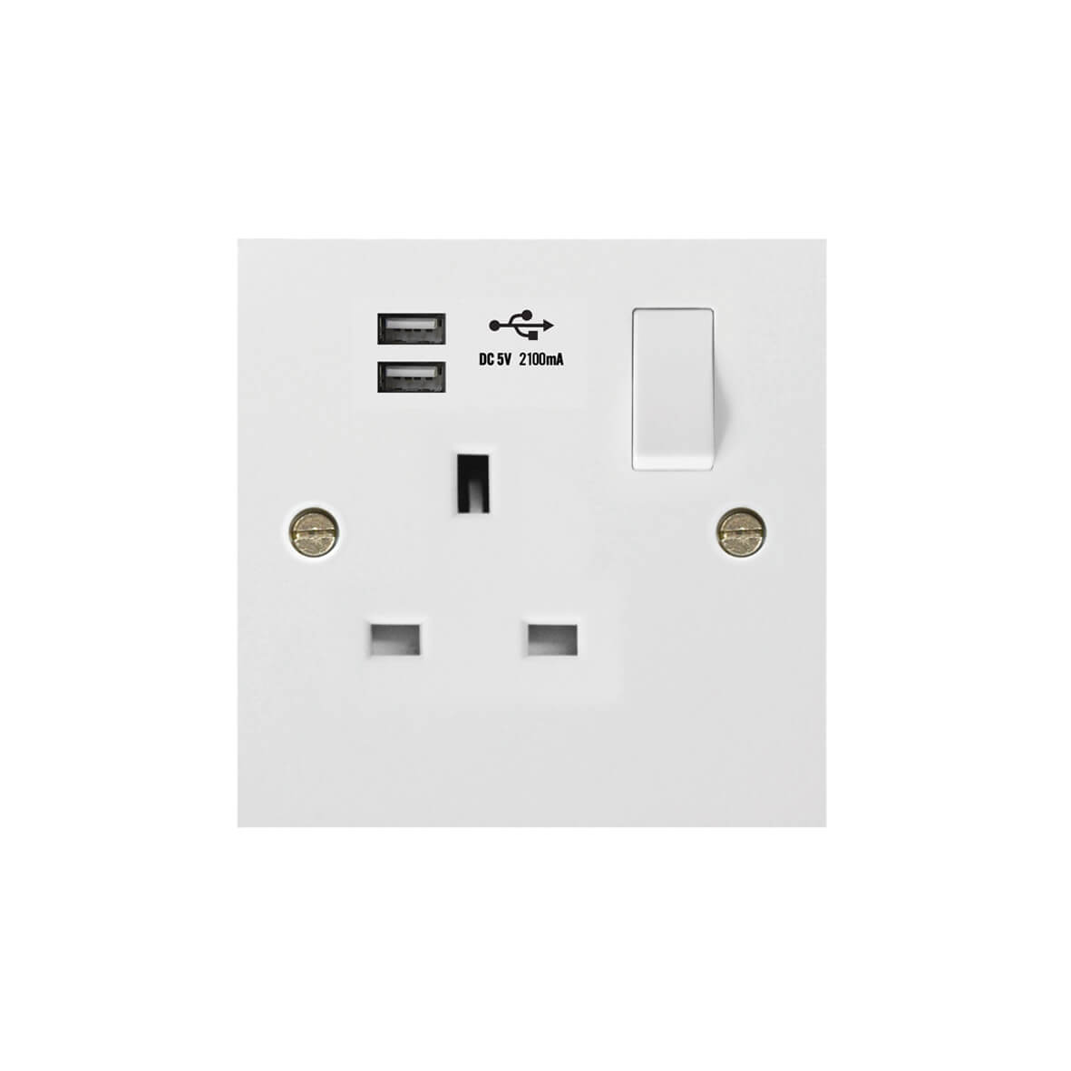 | 189-2U | Molded White Square Profile 1G Universal Switched Socket - SP with USB Charger(2.4A) | |