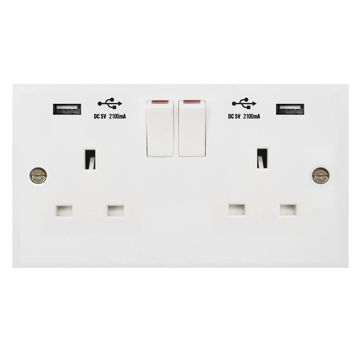 | 182-2U | Molded White Square Profile 2G 13A Switched Socket-SP with USB Charger(2.4A) | |