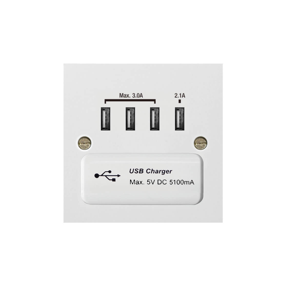 | 151-4U | Molded White Square Profile 5.1A USB Socket Outlet - with 5.1A Quad USB Charger | |