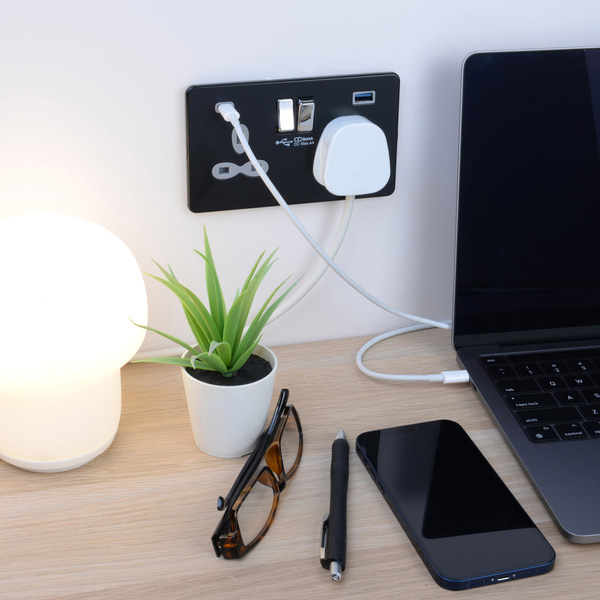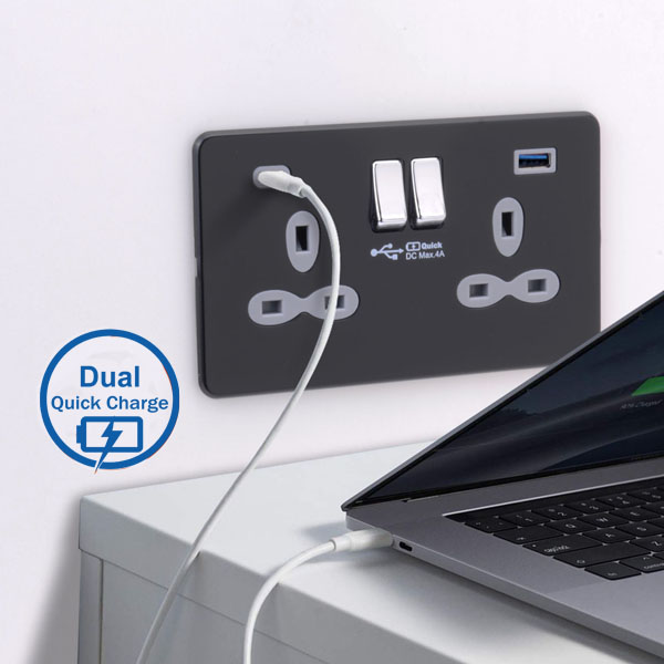 13 AMP 2G Switched BS Socket-DP with 45W Dual USB Quick Charger of USB-A/C