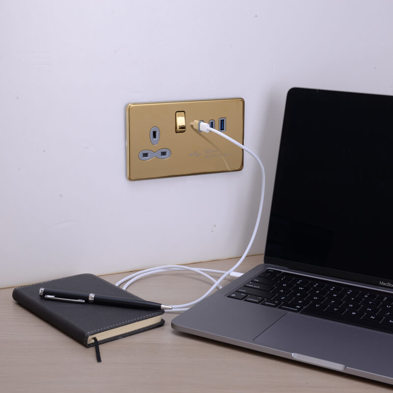 13A 1G SWITCHED BS SOCKET WITH TRIPLE USB QUICK CHARGER-USB-A/ C X 2 (MAX.63W)