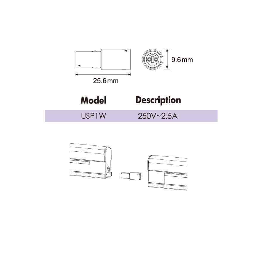 Butt link connector for T5 NTFU LED light fitting hard wire connection
