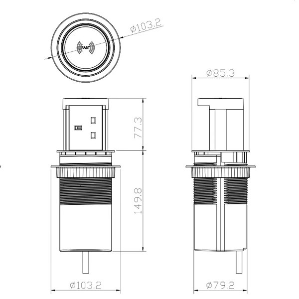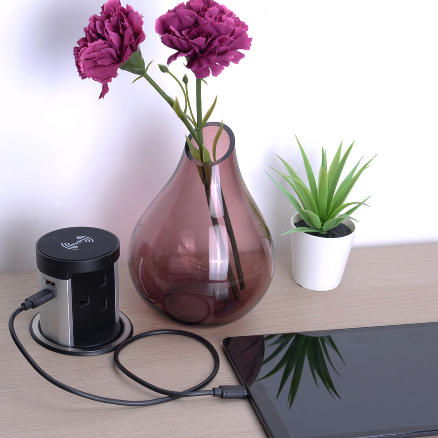 Desktop Power Unit 13A BS Socket with Wireless and Dual USB Quick Charger (USB-A/ C)