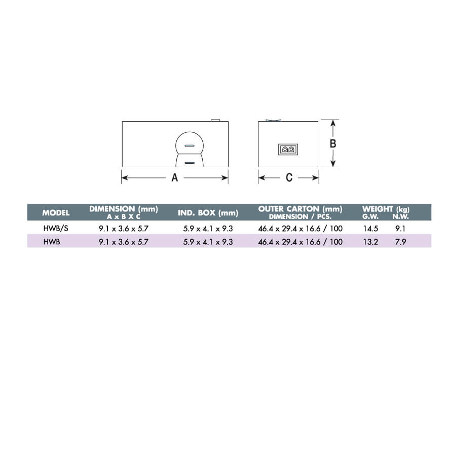 Dimension: 9.1mm (L) x 3.6mm (W) x 5.7mm (H)