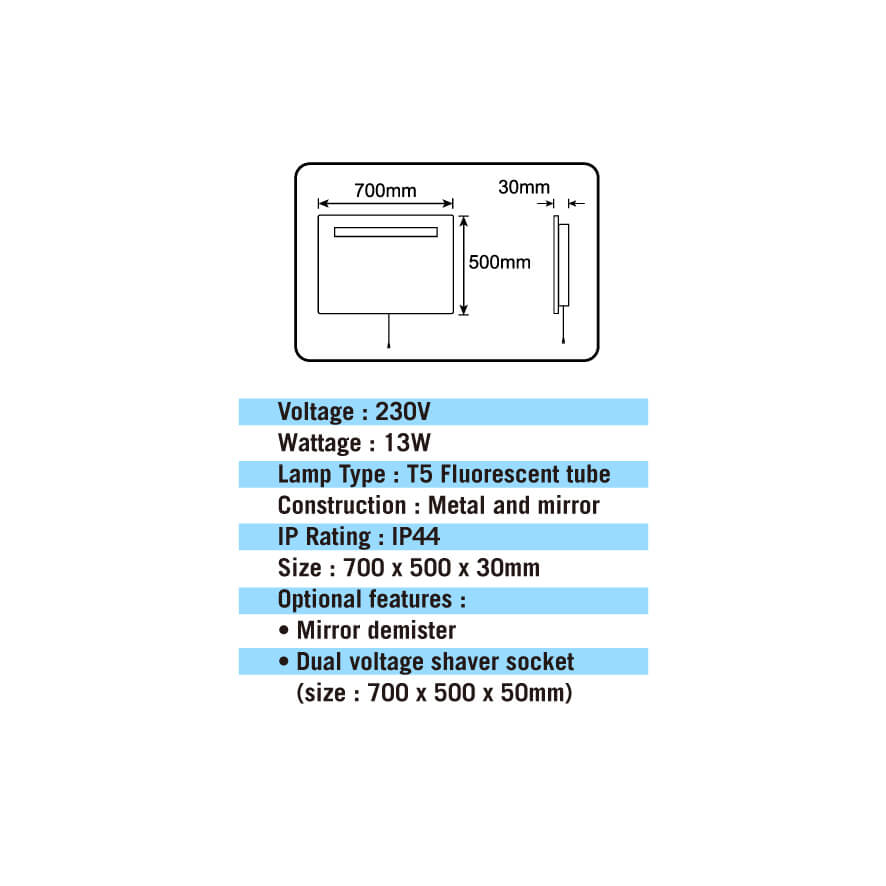Optional with deminster, shaver point, USB charger, touch sensor switch and bluetooth speaker
