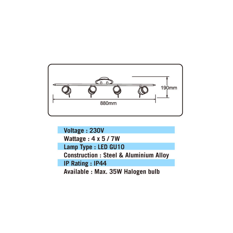Dimensions: 880mm(L) x 190mm(H)