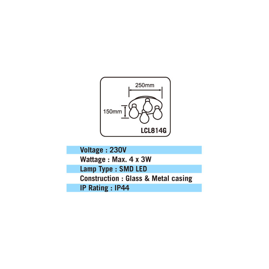 Wattage: Max. 12W (4 x 3W)