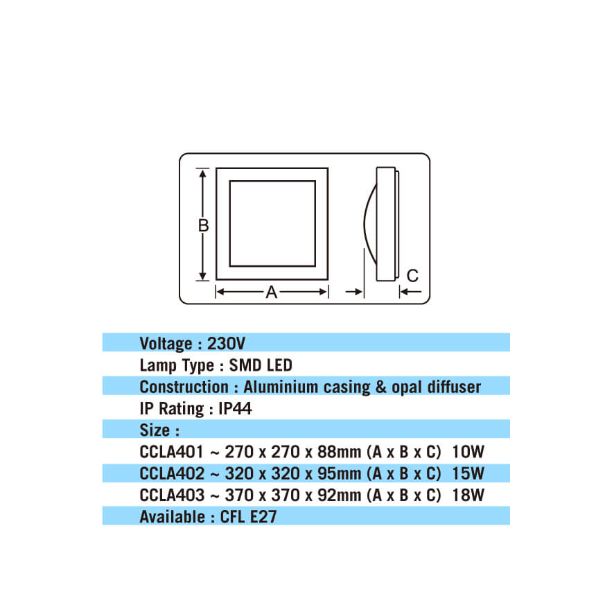 Dimension: 320mm (L) x 320mm (W) x 95mm (H)