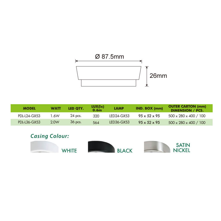 Avaliable for super bright version with 36 units LED (Model:MDL-L36-GX53)