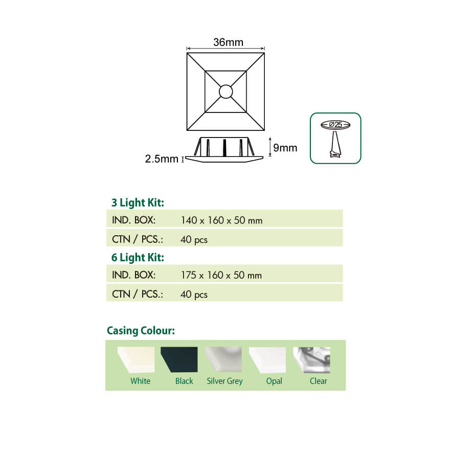 Housing colour: White, Black, Silver Grey, Opal & Clear