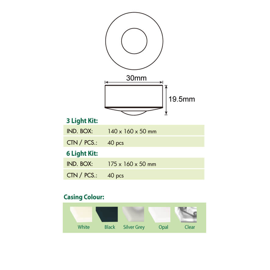 Housing colour: White, Black, Silver Grey, Opal & Clear